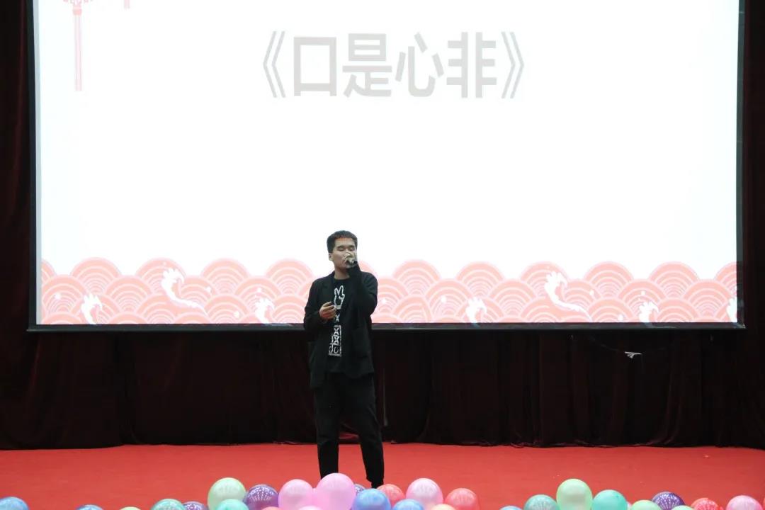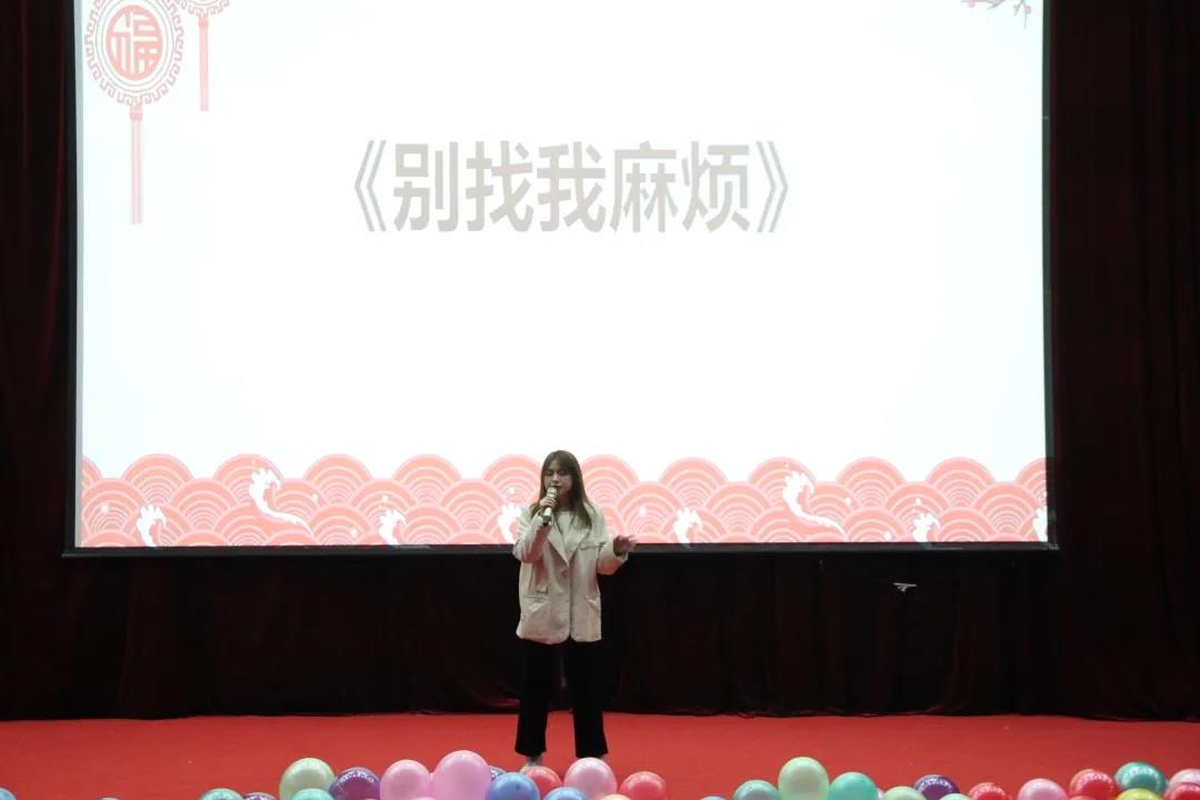 活动开始,我院学生王婷以一首《别找我麻烦》开场,点燃了全场的气氛,随后,荧幕播放我院全体学生干部给大家带来的祝福与期盼,视频里洋溢着甜蜜的笑容,带给同学们最真挚的祝福。