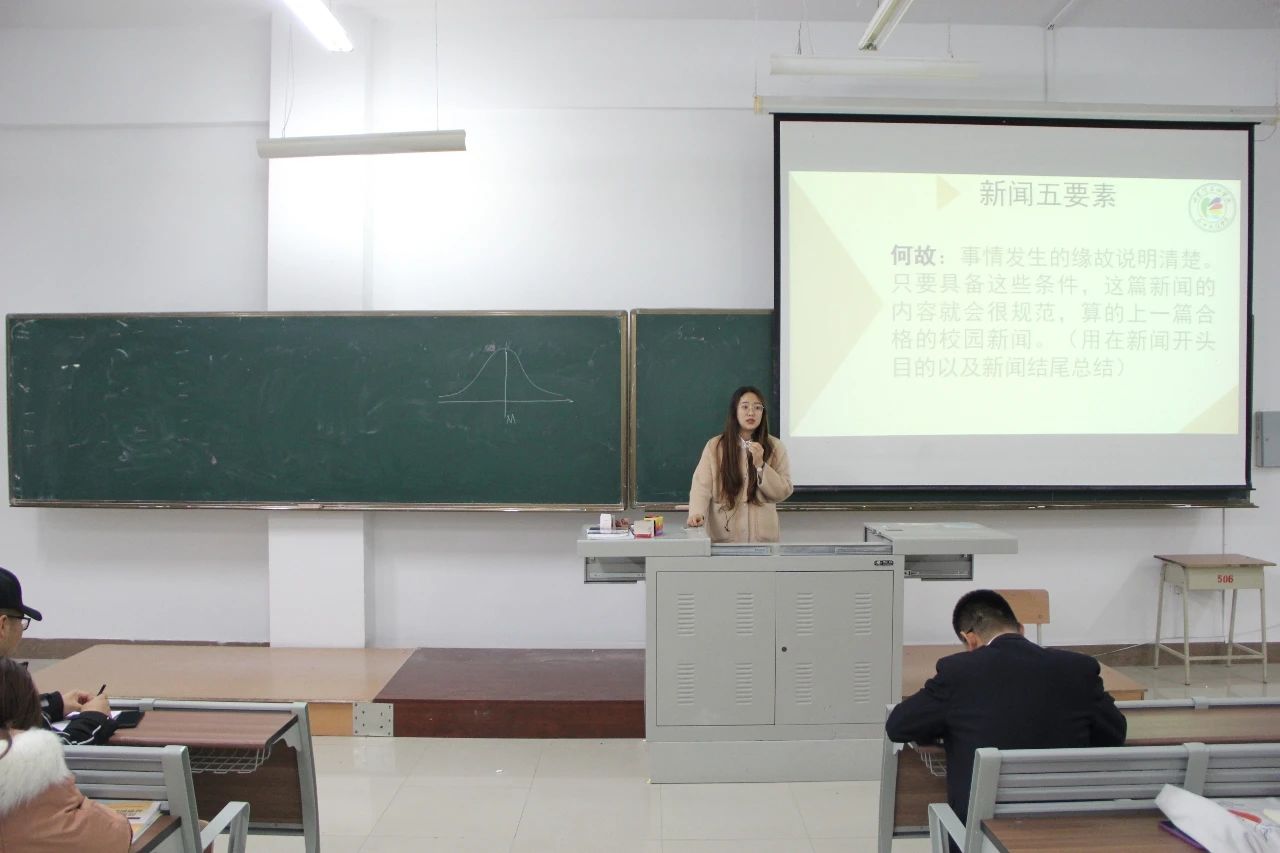 为进一步提高我院学生干部对基本写作的了解,调动同学们对学院宣传建设的积极性。10月28日晚5:30,我院于主教426教室开展以“开拓思维,博闻强识”为主题的基本应用能力写作提升培训会。我院党总支书记刘雁春及各年级全体学生干部参加本次会议。会议由我院分团委新闻部部长李恩红担任主讲人。