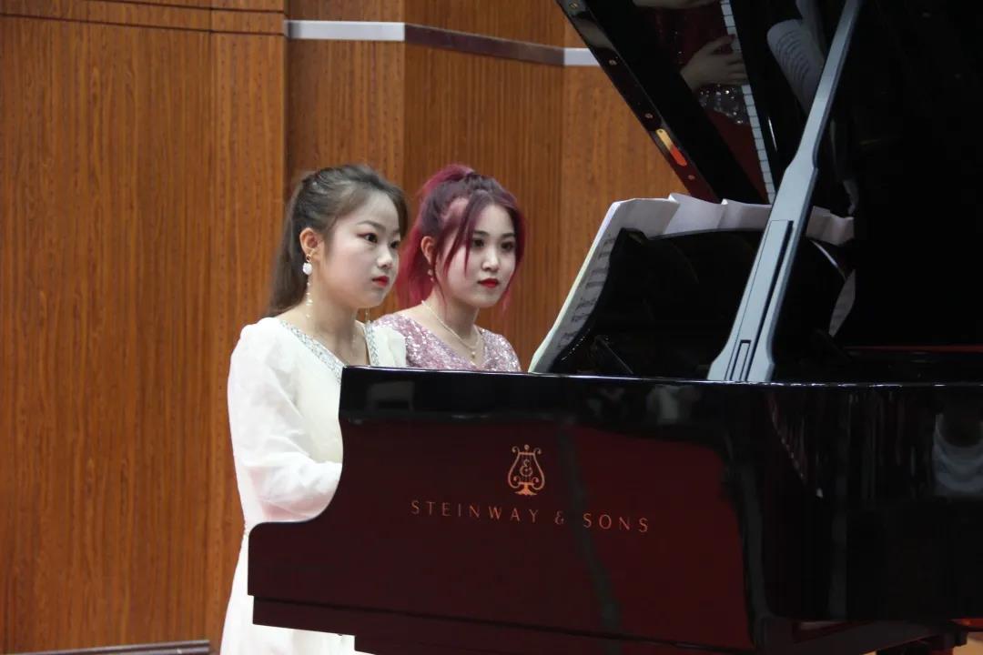一曲四手联弹的《拉德斯基进行曲》令人回味深长,久久不能忘却。彰显青春、时尚《一年级》手势舞蹈便使同学们慢慢找回思绪,尽情欢唱,尽情舞蹈。