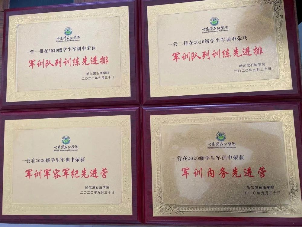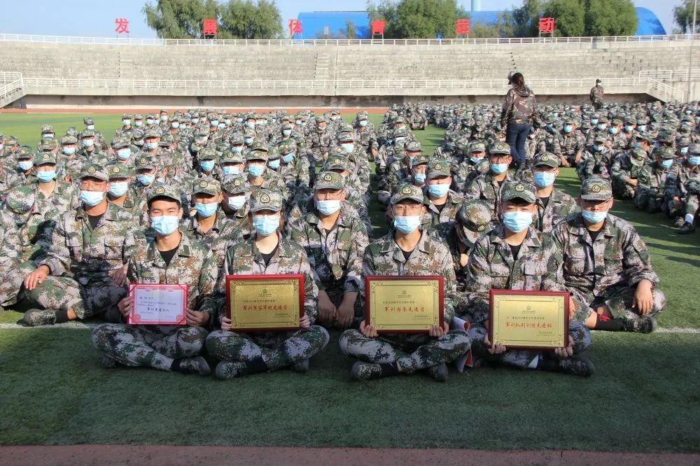 检阅结束后,大会对军训期间涌现出的先进集体和个人,进行了总结表彰。我院荣获军训军容军纪先进营、军训内务先进营,一营一排和一营二排皆获得军训队列训练先进排,共有12名新生荣获军训先进个人,四个寝室荣获军训先进内务寝室。我院参训新生不负多日的努力,用自己的努力为开学第一课交上了一份合格的答卷,也用自己的行动践行了铁人精神!