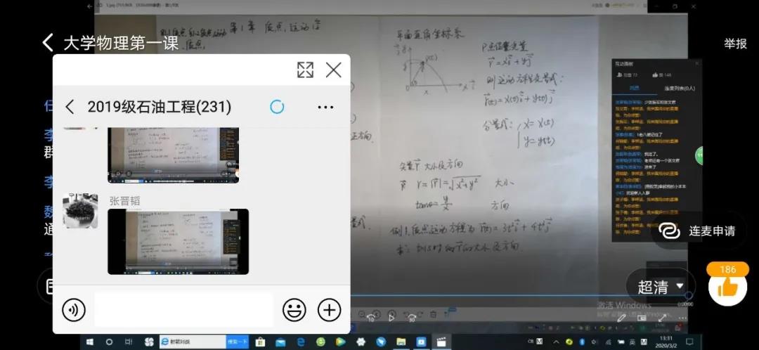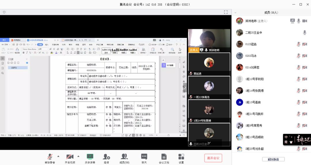 面对第一次尝试线上授课的老师和学生们来说,今天的第一节课,意义不同寻常。我提前要求各班学委统计上课方式、会议号等,第一时间深入“线上”课堂,检查学生的出勤情况。课上,老师授课认真,要求学生记好笔记,对学生们提出严格要求。在面对网络状态不好的时候,也有备案教学方式可选。学生们对新鲜事物的接受能力很强,状态较好,都能按要求出勤。课堂上,教师与学生互动交流,授课生动。亲爱的同学们,停课不停学,你们的假期已经结束,新学期如约而至。在这特殊的时期,大家更要自律,努力学好专业知识,打好坚实基础。与你们分别的第62天,线上教学的第1天,让我更加想念你们这233个“小可爱”,期待快些与大家在美丽的校园重逢!