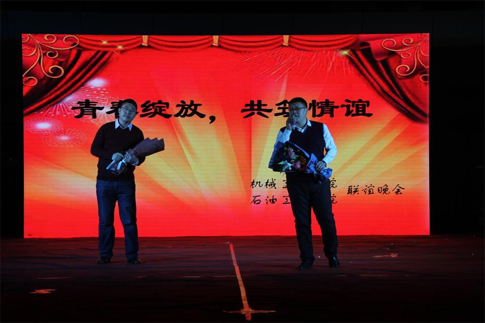 2016年11月25日晚,石油工程学院与机械工程学院在主教阳光大厅隆重举办“青春绽放,共筑情谊”大型联谊晚会。校团委书记王锦石、机械工程学院院长王妍玮、党总支书记毛雷、石油工程学院党总支副书记康平军以及两个学院的部分教师、辅导员出席本次晚会,与现场的同学们欢聚一堂,共同观看了这场精美绝伦的视听盛宴。