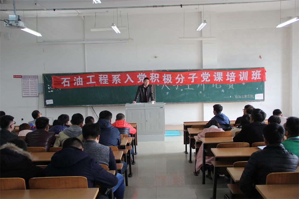 10月28日中午11点50分,石油工程学院入党积极分子培训班第四讲在主教503教室开课。机械工程学院党总支书记毛雷以“大学生党员在群体中起的作用”为主题展开培训。