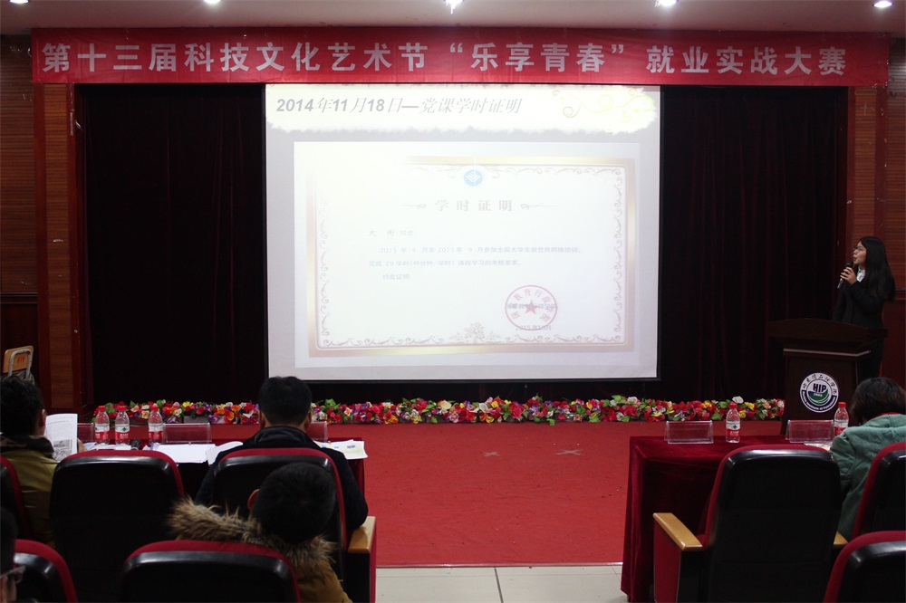 11月26日中午12点,由团委、就业办主办的第五届“乐享青春”就业实战大赛在主教518隆重举行。本次比赛邀请到我省人力资源局秘书长秦光齐先生莅临现场,与来自金融、科技、传媒等领域的一些企业领导共同担任本次大赛评委。院团委书记王锦石、就业办公室翟琳老师以及部分团总支书记、辅导员出席了本次活动。