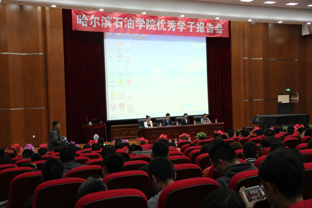 在长达2个多小时的报告中,三名校友分别就自己工作领域的就业形势和具体工作,向同学们做了详细的介绍。王辉作为毕业生成功创业的典型代表,主要从学生干部经历对自己步入社会后的帮助和个人创业时需要注意的具体事项等角度展开介绍;杨晓晨从自己银行工作的角度,为同学们谈了自己的心得体会;最值得一提的是,10届毕业生校友杨学东,这位当年被称为“学霸”级的人物,毕业后就职于上海中曼石油天然气有限公司,凭借着自己的坚持和努力,勤奋和肯干,从一名钻井工、泥浆工成长为一名技术员,并被派遣到伊朗、伊拉克等地工作。此次回到母校,正值他回国探亲。杨学东通过一组组真实的国外工作照片,向同学们直观地展示了国外油田工作中的苦与乐,给学弟学妹们上了一堂生动形象的社会实践课。 在互动环节中,现场的几名同学向杨学东学长提出了一些关于国外油田工资待遇、未来发展以及生活休息等比较关心的问题,杨学东学长也一一耐心的给予了解答。在报告会的最后,学工处宁晶处长代表学院对三位校友在各自事业上做出的优异成绩表示祝贺,并真挚地欢迎各位校友能够常回“家”看看。报告会在同学们热烈的掌声中结束。