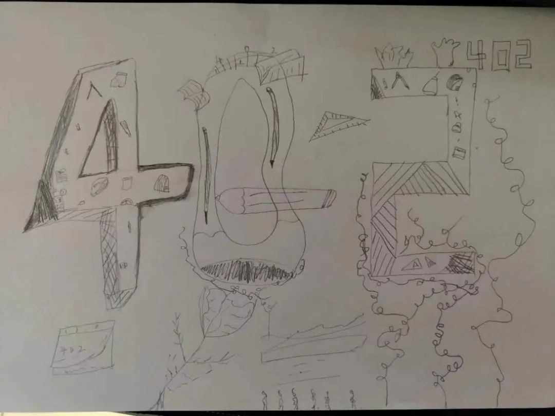 根据门牌号和数字有关系所以联系到数学用具 本子,笔,尺子,圆规等,因为数字需要思考所以长出了很多草。