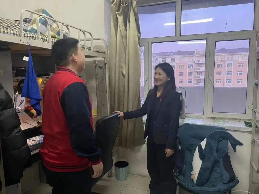 为及时了解学生返校后生活状况,掌握学生思想动态,敦促学生保持良好的学习生活习惯、鼓励学生以积极的状态迎接新学期。2月26日,我院党总支书记刘雁春、副书记张雪、2021级辅导员王娜、2022级辅导员尹航深入学生宿舍看望慰问返校学生,实地了解学生在宿舍的学习、生活、心理等情况,为学生送去关心和问候。