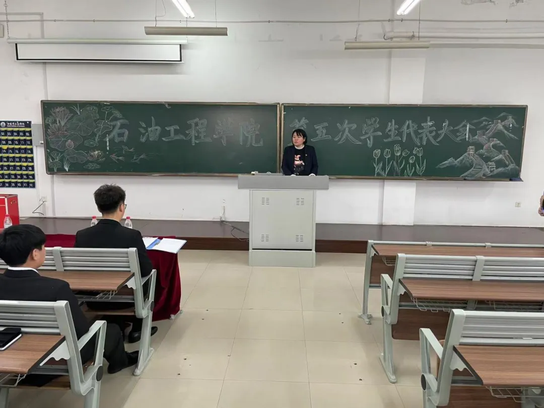 根据《欧博abg游戏登录入口学生联合会章程》、《石油工程学院学生联合会章程》及校联关于同意我院组织召开第五次学生代表大会的批复意见,同时为明确我院学生组织遵循热情、文明、专注、奋进的工作理念,强化责任意识和规范意识,使学生会工作任务更加清晰,石油工程学院第五次学生代表大会预备会议于2023年5月16日15:30顺利召开,石油工程学院学生会主席团及60名学生代表参加本次会议,由石油工程学院党总支副书记&团总支书记张雪对本次会议进行指导,会议由王一涵主持。