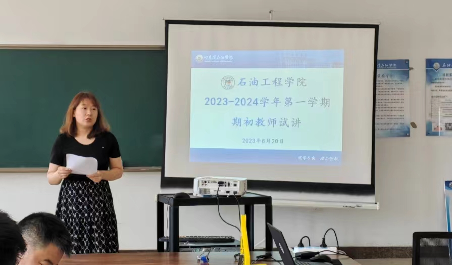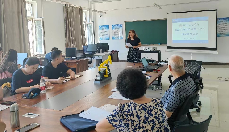 为了进一步提高我院的整体教学水平,严把课堂教学关,以评促教,以评促改。2023年8月20日上午9:30 ,我院在学院实验室206开展了新学期“新上课、上新课”试讲活动。本次试讲教师共3人,石油工程学院院长李岳祥,副院长朱砂,校督导教授于惠力、邱子健,主任教授张大为及全体教师出席本次试讲。本次试讲由副院长朱砂主持。