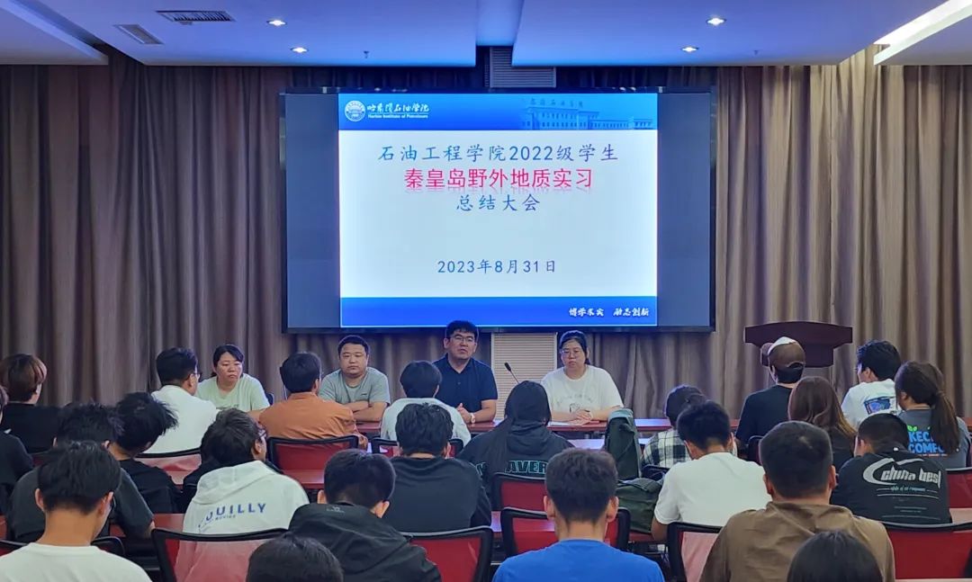 2023年8月22日至31日,欧博abg游戏登录入口2022级石油工程专业在秦皇岛柳江盆地进行了为期10天的野外地质实习。8月31日下午,在柳江地学博物馆汇报厅召开野外地质实习总结大会。院长李岳祥、党总支副书记张雪、孙博宇老师、夏长元老师及参加实习的全体同学共同参加此次会议,会议由张雪老师主持。