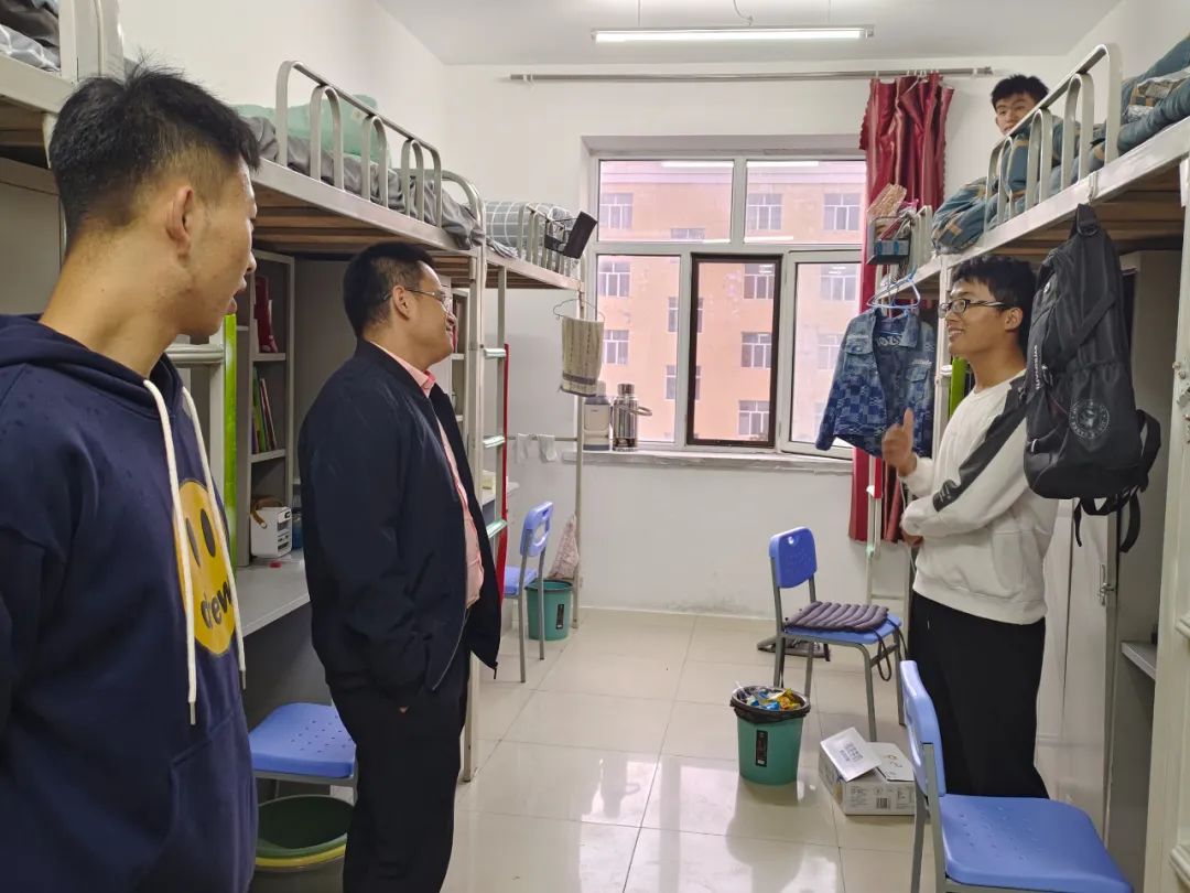 中秋国庆假期已过半,为进一步落实以铁人精神树人的根本任务,关心关怀我院双节假期留校学生在校情况,10月3日,石油工程学院党总支书记刘雁春对我院假期留校学生宿舍进行走访慰问,与同学们“聊近况、话学业、谈安全”,送上节日的关心与祝福。
