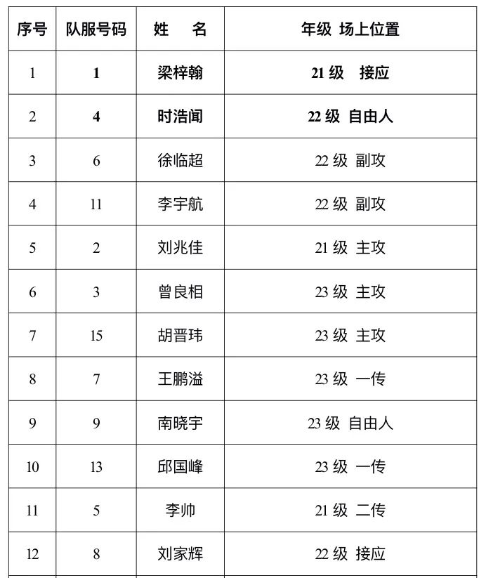 男排成员名单