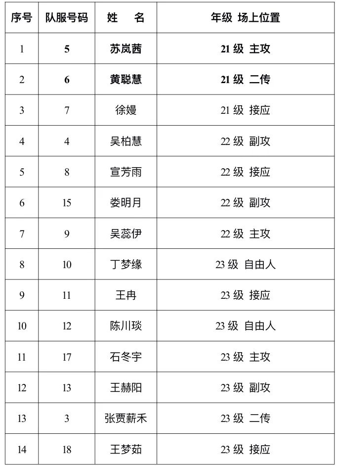 女排成员名单