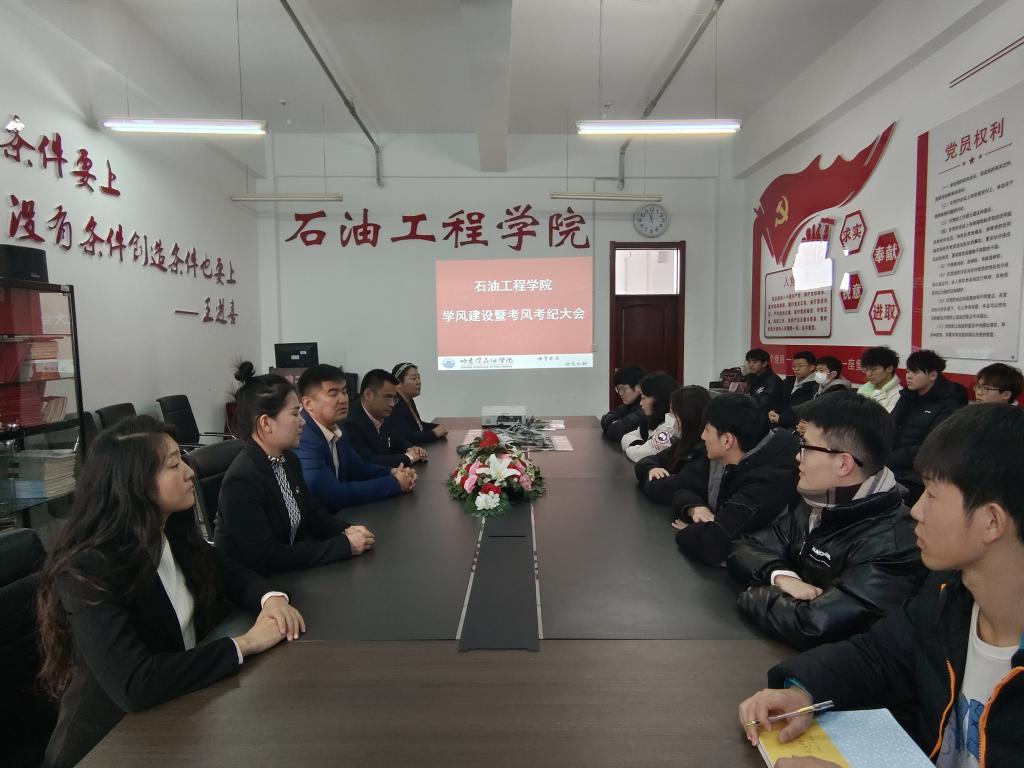 为深入落实我院立德树人根本任务,扎实推进以铁人精神育人工作机制,发挥我院典型示范引领作用,进一步推动优良学风建设与考风考纪建设,11月24日,石油工程学院于703党员之家开展学风建设暨考风考纪“挂牌”活动。我院院长李岳祥、党总支书记刘雁春、党总支副书记张雪、各级辅导员出席此次活动,党员学生代表、积极分子代表及各班班长参加此次活动。本次活动由我院党总支副书记张雪主持。
