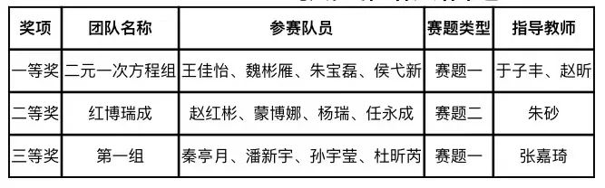 获奖团队信息