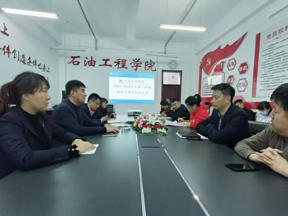 12月29日下午,石油工程学院在703B会议室召开2023—2024学年第一学期教职工期末总结大会。石油工程学院院长李岳祥、党总支书记刘雁春、副书记张雪、副院长朱砂及全体教职工参会,会议由李岳祥院长主持。