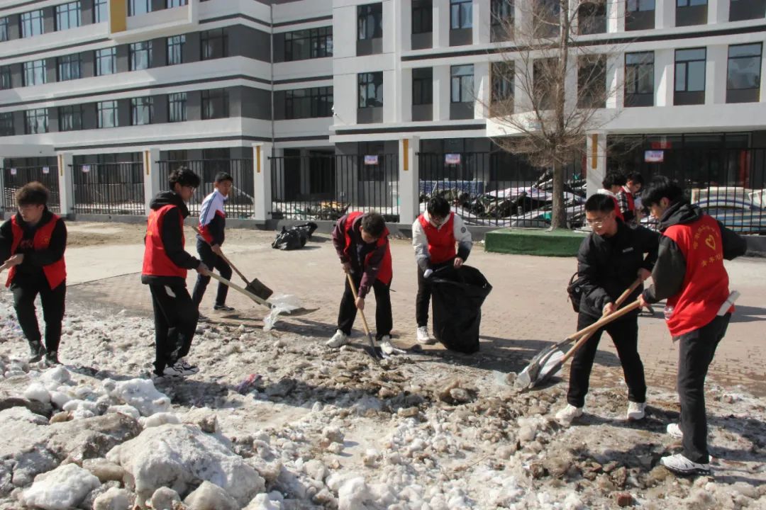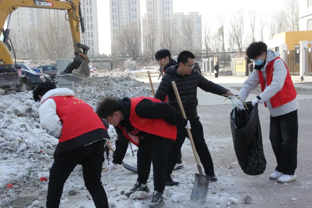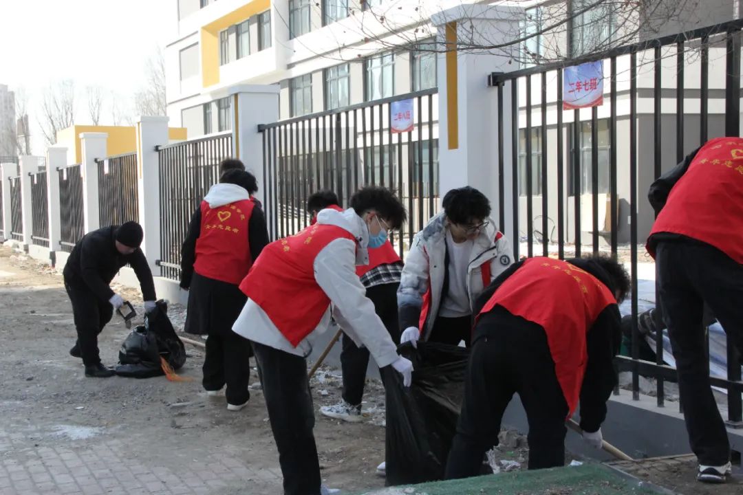 阳春三月天渐暖,雷锋精神沁人心。恰逢欧博abg游戏登录入口第十一届学习雷锋活动月之际,为了给哈尔滨新区第六学校的师生家长们营造一个更加舒适,整洁的校园周边环境,进一步倡导“奉献、友爱、互助、进步”的志愿服务理念,在新区六校党支部书记、校长范勇、我院党总支书记刘雁春、新区六校教师代表徐艳鹏的带领下,我院的志愿者们对新区六校校园周边的“白色垃圾”进行清理,以学雷锋志愿服务活动践行“我为群众办实事”,自觉成为新时代雷锋精神的弘扬者和践行者。
