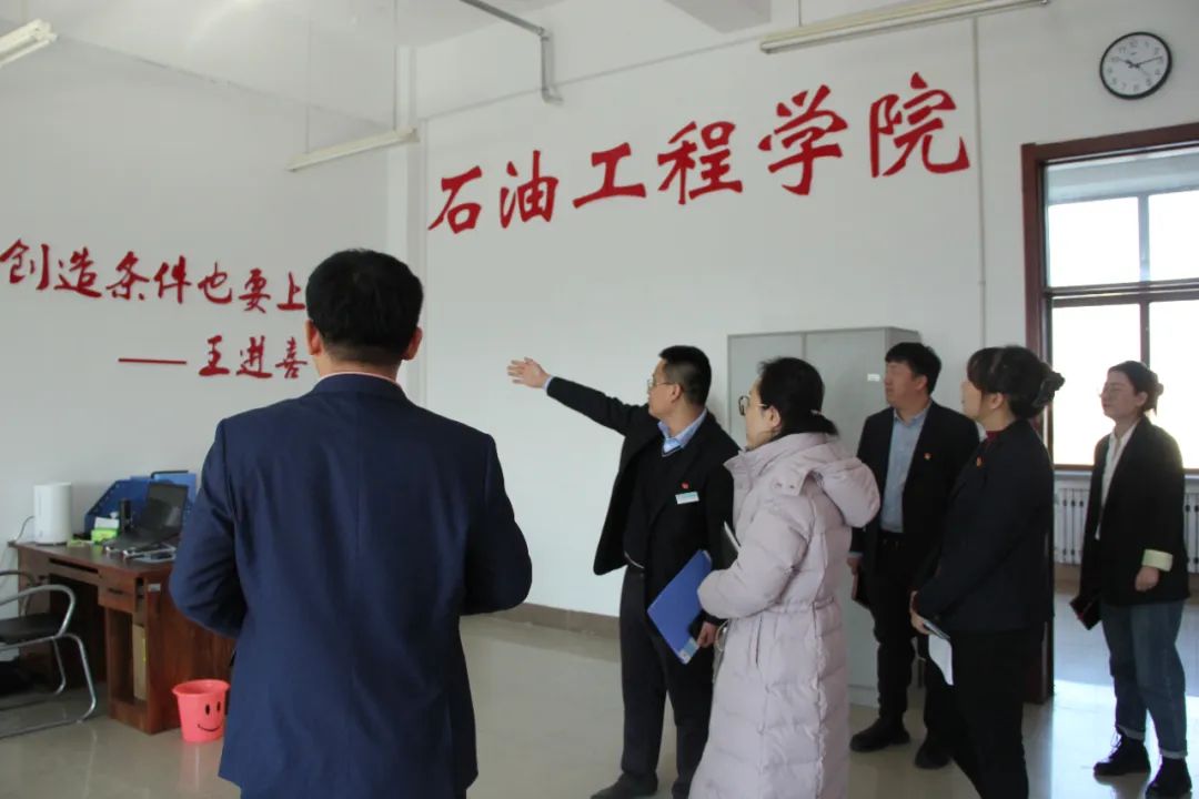 王校长认真听取了汇报后,对我院所取得的成绩表示肯定,对今后的工作思路和设想表示认同,并针对学院现阶段发展中所面临的困难、问题进行了指导。她表示,一是希望石油工程学院能根据自身发展需要,立足新形势,抓住新机遇,认真贯彻新发展理念;二是积极融入新发展格局,持续推进内涵发展和特色发展,谋划高层次人才高质量发展战略,深入挖掘铁人精神内涵,将考研和教学实验班的品牌有机结合起来,提高人才培养质量;三是紧扣应用型本科高校办学要求,科学把握新发展阶段,努力提高办学质量和办学层次,着力推进现代实验室建设,大力推进现代产业学院建设等。