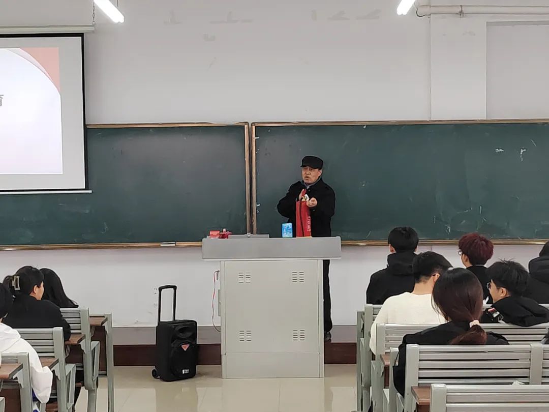 教育会上,保卫处老师通过真实案例,强调了在火场疏散逃生中果断撤离原则,教授了如何正确选择路线、如何以湿毛巾等简单器具或低身前进法防烟,如何打求救信号、正确选择待援策略等。而后他对灭火器与消火栓的使用方法进行了细致的讲解于演示,指导师生掌握常见消防器材灭火器与消火栓的使用方法。