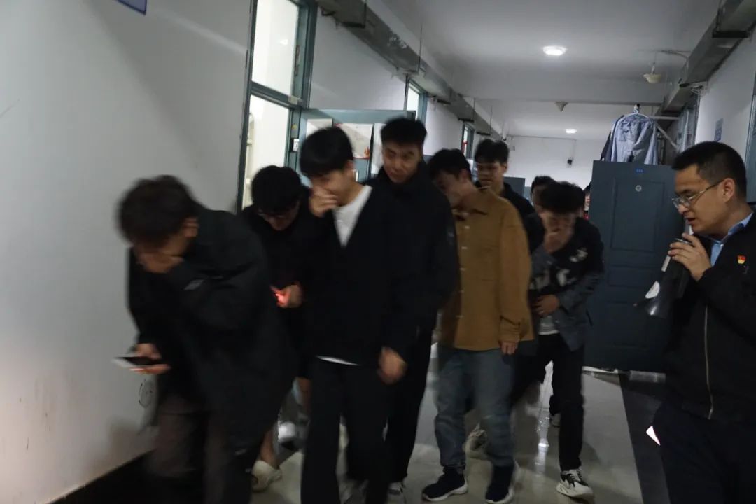 刘书记首先对参与同学们普及相关安全疏散知识,做好安全提示。随后带领同学们熟悉疏散路线和相关要求,志愿者们沿途提醒学生在演练中不慌张、不推挤,让参加的同学们沉浸式全方位体验,真正了解到此次夜间安全疏散演练的目的及意义。