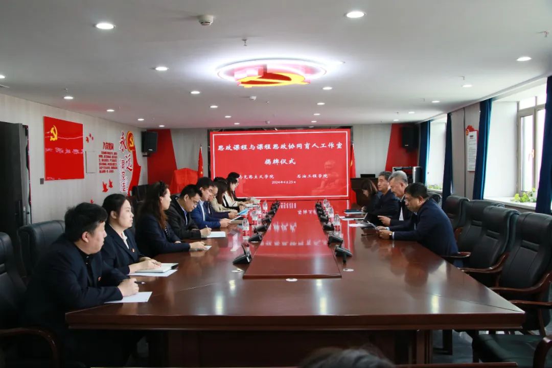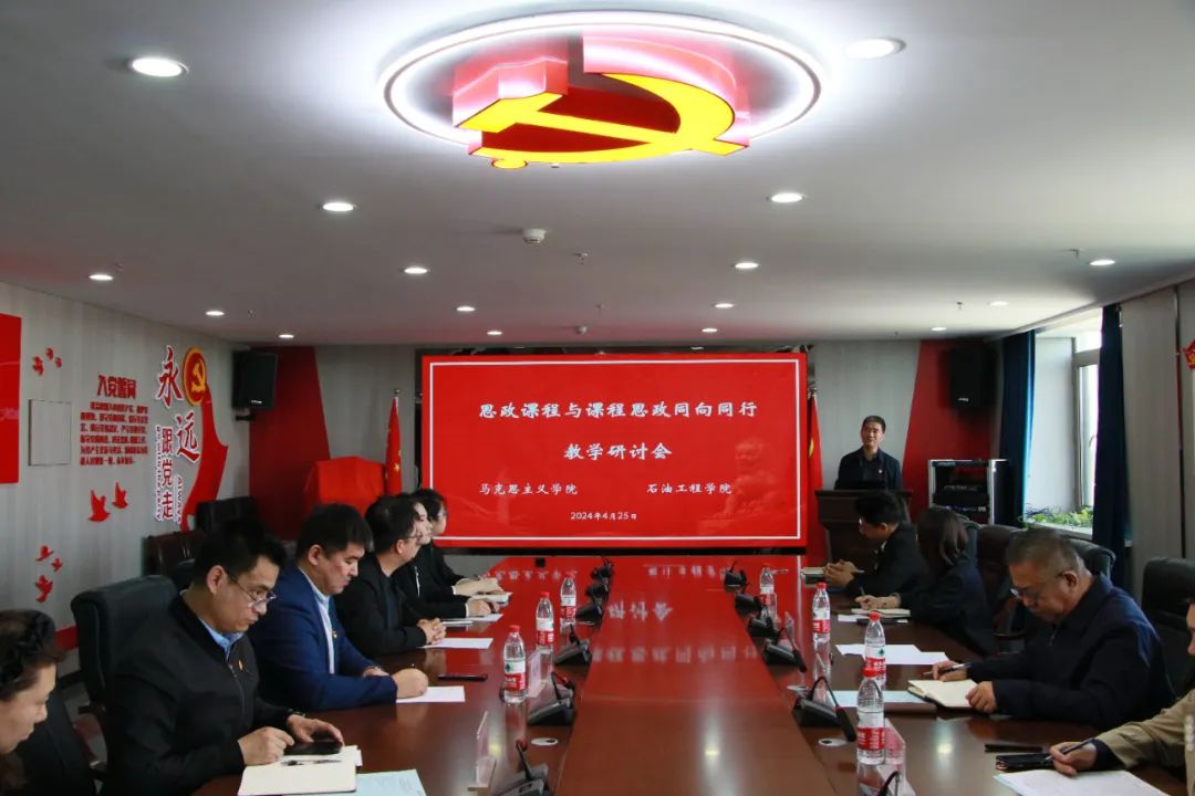 揭牌仪式后,思政课程与课程思政同向同行教学研讨会正式开始。院长李岳祥、马克思主义学院副院长王瑞分别就石油工程学院和马克思主义学院课程思政和思政课程开展情况进行介绍。