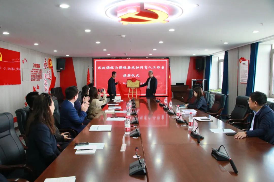 随后,党委副书记、纪委书记刘铎宣布“思政课程与课程思政协同育人工作室”揭牌仪式启动,并与副校长胡文一同为工作室揭牌。