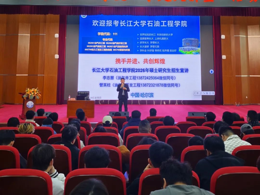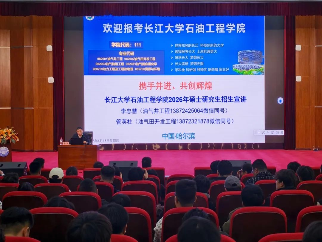 近日,为助力学生明晰升学路径,深入了解研究生招生动态,石油工程学院特别邀请到长江大学大学管英柱教授,在图书馆报告厅开展了2025年研究生招生宣讲会,此次活动由李岳祥院长主持。