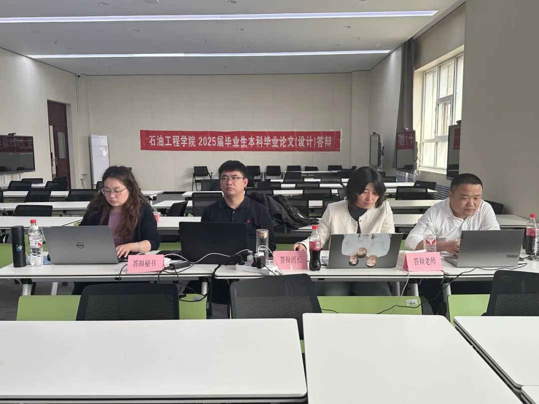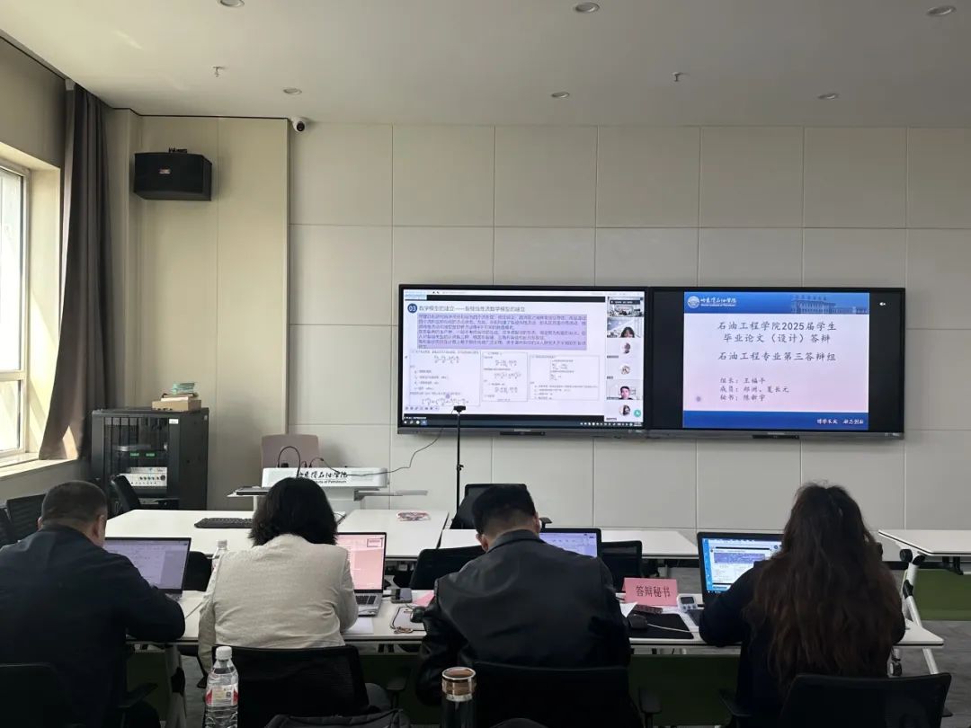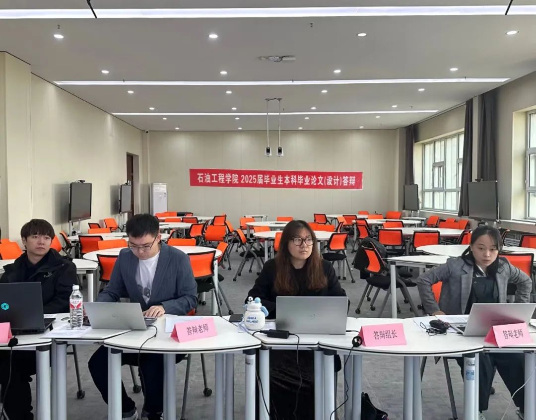 本次答辩由我院28位专兼职老师组成石油工程专业、油气储运工程专业,共计7个答辩组。答辩工作采用答辩组教师线下统一地点、学生“线上网络直播答辩+线下返校现场答辩”相结合的形式进行,共有3名学生返校参加线下现场答辩。