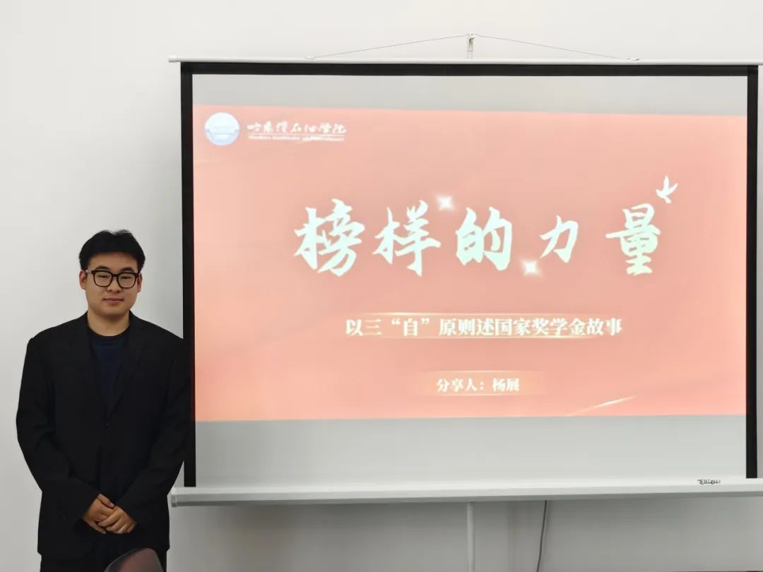 首先,2023级国家励志奖学金获得者辛悦分享了自己在各类学科竞赛中的宝贵经验。她以“备赛时熬的每个通宵、方案推翻重来的每个瞬间,都是突破自我的阶梯”为例,鼓励同学们打破舒适圈,将竞赛作为锤炼专业技能、培养创新思维的试炼场,在实战中实现能力与心智的双重成长。