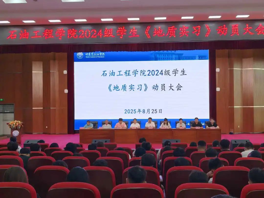 2025年8月25日,石油与化学工程学院在图书馆报告厅隆重召开2024级地质实习动员大会,旨在统一思想、明确任务、严明纪律,确保本次实习工作安全、有序、高效开展。学院院长李岳祥、党总支书记赵婧、副院长彭殿宝、朱砂、党总支副书记王昱、东北石油大学柳成志教授,辅导员王琦源及全体实习带队教师,2024级石油工程、新能源科学与工程专业全体学生共同参加会议。会议由实习课程负责人夏长元老师主持。