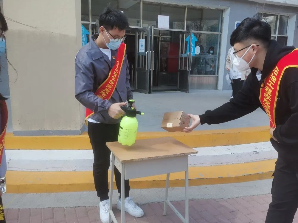 为充分发挥党员在疫情防控中的先锋模范作用,扎实开展党团员志愿服务工作。4月24日,我院党总支组织党团员志愿者开展寝室楼前消杀快递志愿服务。