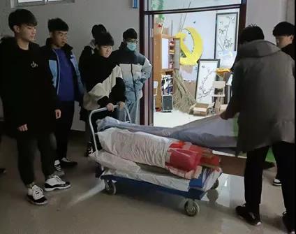 搬迁过程中,刘书记和学生干部志愿者服务团队一起搬运物品、清查物品,及时解决调整过程中出现的各种问题。相互帮助、团结友爱,充分利用搬迁工具,是落实“我为师生办实事”实践活动的具体体现,在看得见摸得着的实际行动中,时刻牢记志愿者身份。在我院领导与学生干部志愿者的共同努力下,高效完成着各办公室搬迁的工作。