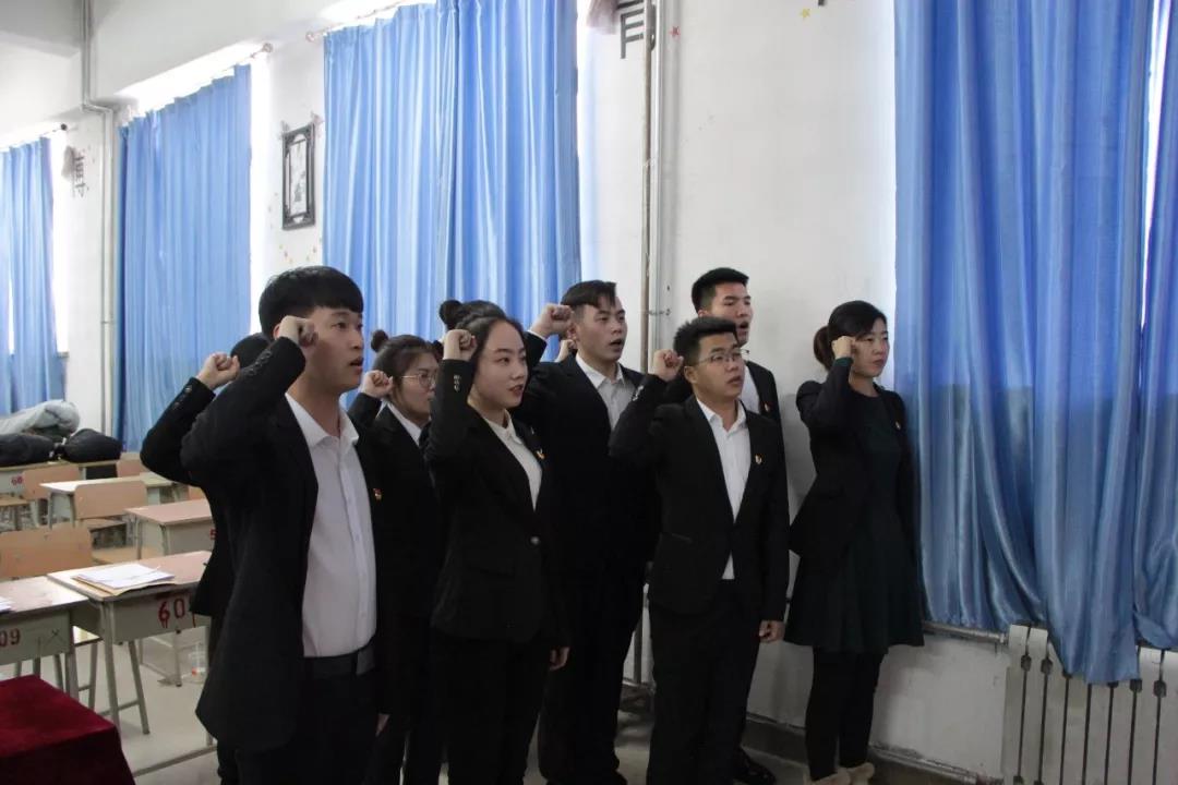 会议严格按照组织发展程序进行。吴运航等9名同志分别宣读了《入党志愿书》,入党介绍人介绍了他们的有关情况,并对其能否入党表明了意见。支委会组织委员郑洲向大会分别报告了9名同志的资格审查情况。与会党员进行了充分的酝酿讨论,并发表了意见。经逐一投票表决,大会一致通过关于接受吴运航等9名同志为中共预备党员的决议。随后,刘雁春等同志为新党员佩戴了党徽;学生党支部书记王昱带领新党员面向党旗郑重宣誓,同时带领老党员重温了入党誓词。