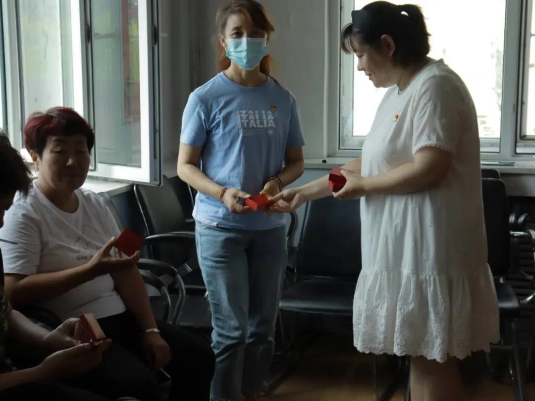 活动第五项,党总支副书记张雪代表我院赠予老党员“中国”胸章及红色书籍。