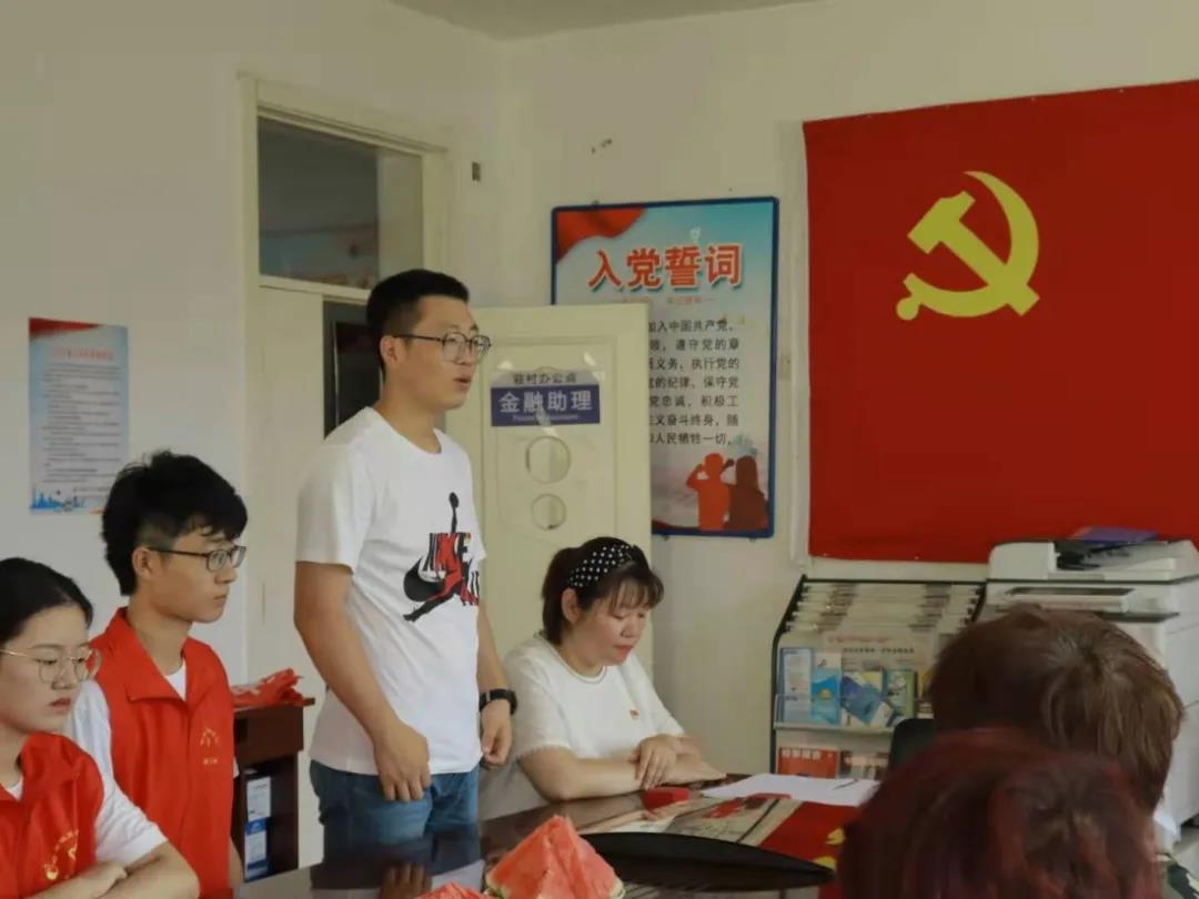 活动第二项由学生党支部书记贾延迪讲话,他表示:要不断引领我院青年学子结合专业特色,创建学院与地方扶贫相结合、学生理论学习与实践锻炼并行的扶贫新模式,要在观察实践中学党史、强信念、跟党走,勇做担当民族复兴大任的时代新人,彰显了广大青年学生昂扬奋进、勇往直前的青春活力。以实际行动庆祝中国共产党成立 100 周年;