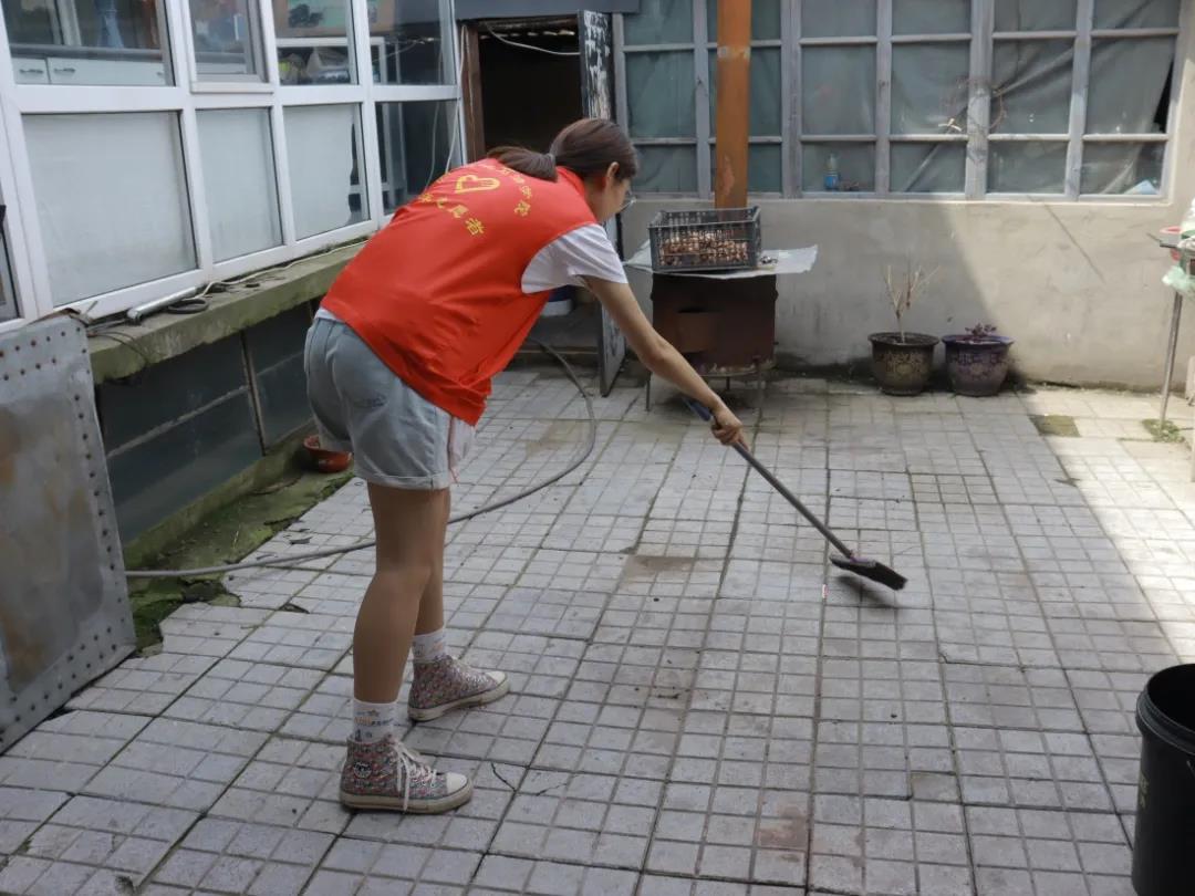 仪式结束后,志愿者为村民们打扫卫生,清扫垃圾,与村民们热切的交谈,并发放了防疫宣传海报。