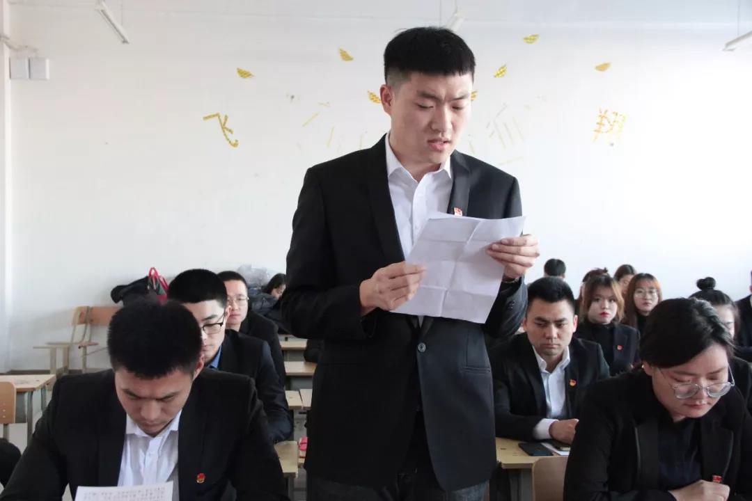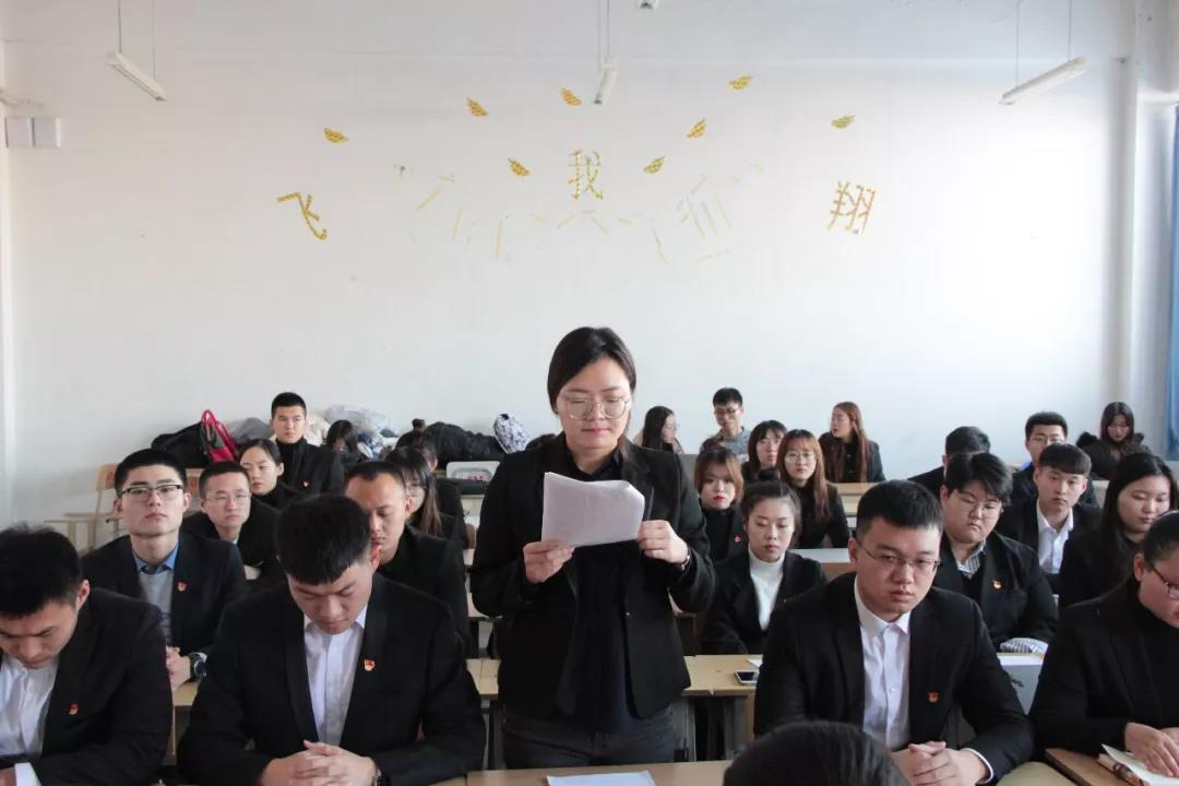 12月4日,我院学生党支部在609教室召开支部大会,大会对冯宇等七名预备党员能否按期转正进行了讨论。党总支书记刘雁春、党总支副书记张雪、学生党支部书记王昱、学生党支部组织委员郑洲,宣传委员胡旭、纪检委员李井洋参加大会,大会由学生党支部书记王昱主持。