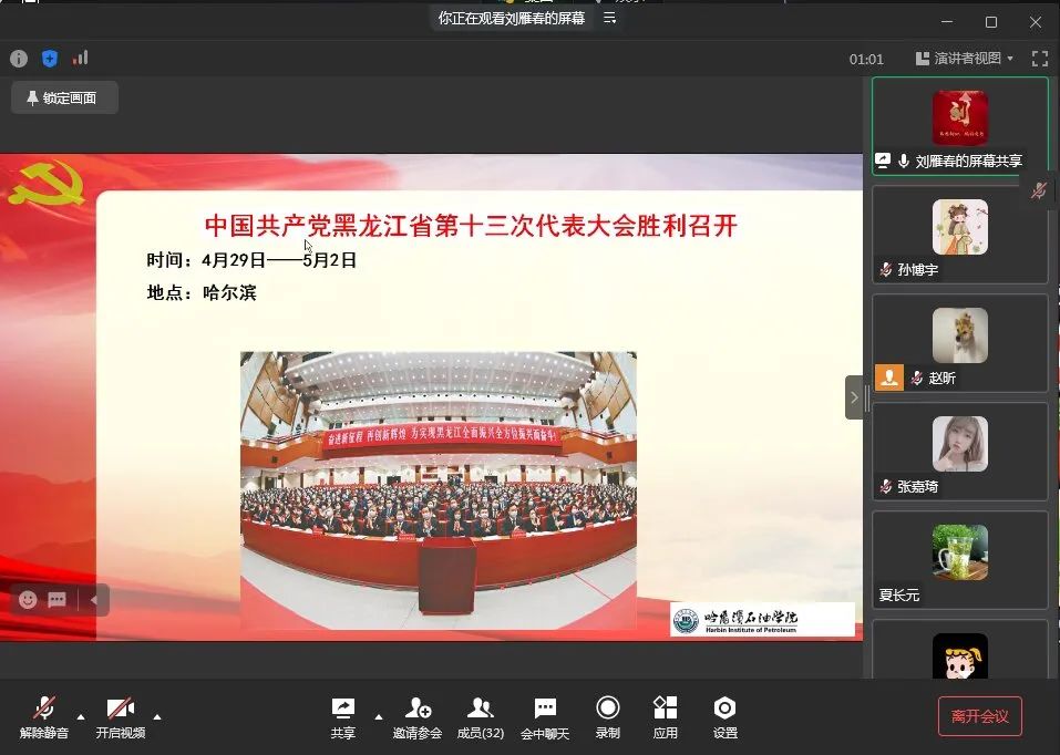 学院党总支高度重视本次活动。党课内容聚焦黑龙江省第十三次党代会主题,领略五年来龙江各项事业取得的新成效,明确未来五年龙江新发展的总体目标及“六个龙江”的建设要求。党课上,刘书记结合自身学习体会解读了黑龙江省第十三次党代会报告的主旨精神。他强调,要深刻领会省第十三次党代会精神实质,准确把握科学内涵,自觉把思想和行动统一到省第十三次党代会精神上来。要紧密围绕龙江振兴事业发展新形势、新要求,准确把握省委确定的未来五年龙江全面振兴全方位振兴奋斗目标、攻坚着力点和重点任务;同时刘书记指出,支部全体师生党员要在习近平新时代中国特色社会主义思想的指导与引领下,不忘初心、牢记使命,坚定信心、真抓实干,以永不懈怠的拼搏精神和一往无前的奋斗姿态,奋力开创龙江全面振兴全方位振兴新局面。