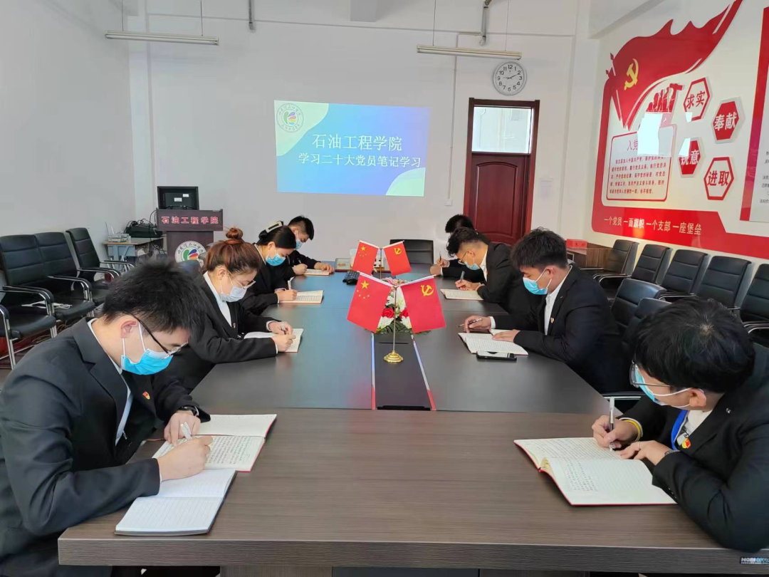 为深入学习宣传贯彻党的二十大精神,连日来,石油工程学院党总支把学习宣传贯彻党的二十大精神作为首要政治任务,精心谋划,认真组织,广泛开展学习宣传贯彻党的二十大精神活动,积极推动党的二十大精神进课堂、班级、进头脑,将党的二十大精神生动、深刻、系统地融入教育教学和人才培养之中。师生的学习热情持续高涨,学习活动步步深入,学习形式不断创新,全院掀起了深入学习宣传贯彻党的二十大精神热潮。