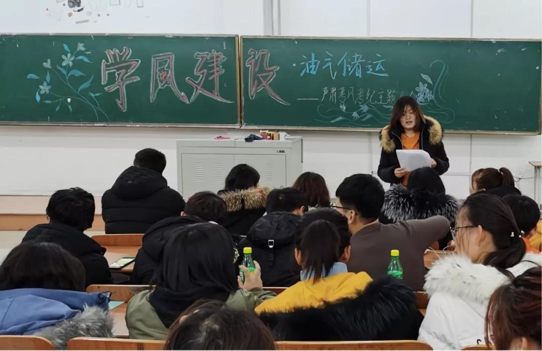 随后,着重向同学宣讲了学校考试管理办法的有关规定,强调了考风考纪问题,告诫同学们要端正学习态度、严明考试纪律,时刻谨记“守纪光荣、作弊可耻”。同时,希望大家能够在期末考试中展现大学生良好精神风貌,自觉遵守公平公正的考试氛围,取得优异成绩。