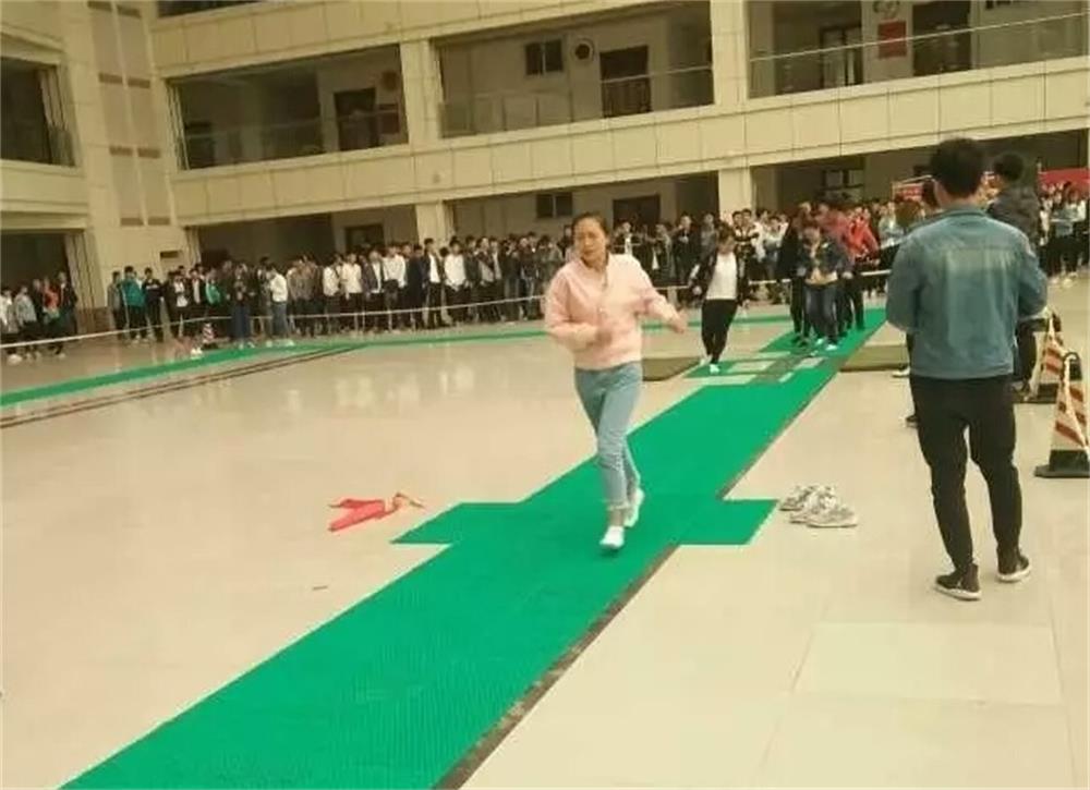 此次比赛所有项目均在指压板上进行,由起点的单人跳蛙开始,依次进行单人跳绳、大象转圈、二人三足、跳大绳、绕圈跑等项目。我院由16级男生和女生各派出一个寝室的12名选手组成的队伍参加比赛。赛场上,选手们按队列排好准备比赛,随着裁判的口令,所有选手开始比赛,瞬间场上就充满了观众们的呐喊和加油声,选手们每前进一步都会从踩在指压板的脚上传来钻心的疼痛,但还是奋力向前,我院选手凭借坚强的意志和紧密的配合迅速领先,各二级学院参赛者也都打起十二分的精神来面对重重关卡,比赛进行的十分激烈。随着时间地推移,随着各组参赛者记录的不断刷新,比赛逐渐进入白热化。直到最后一组参赛选手完成最后一道关卡,比赛才在老师同学们的欢呼声中缓缓落幕。