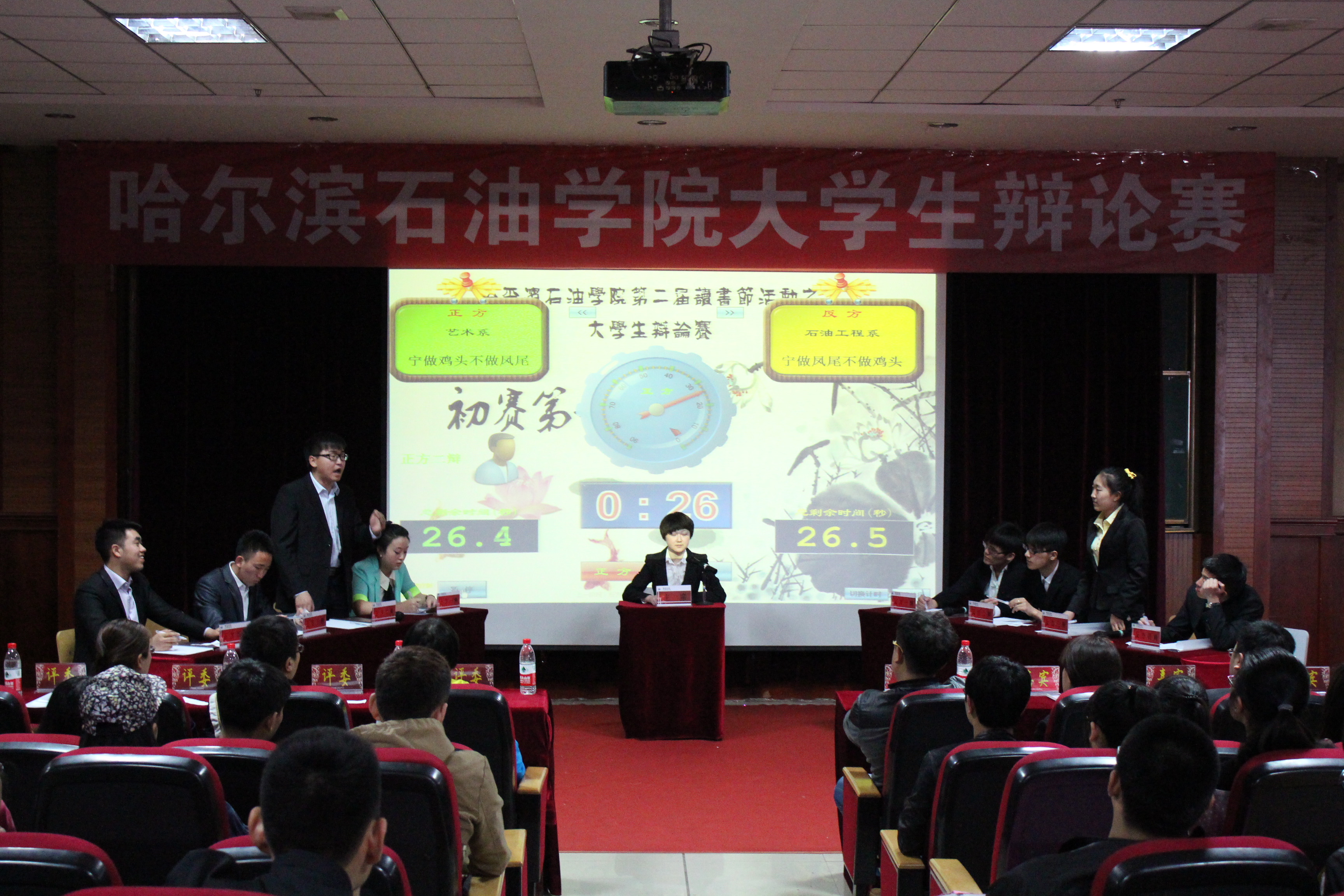 4月11日中午,由共青团欧博abg游戏登录入口委员会、思政部、就业办公室联合主办,大学生就业创业中心承办的第二届读书节活动之“书香扬石油,群口辩英雄”大学生辩论赛初赛第一场在主教518隆重举行。本场比赛特邀思政部冯博、王艳辉、陈威以及宣传部赵荟、外语系王铮等五名教师担任评委。团委王锦石、石油工程系团总支书记康平军、辅导员于洪峰,艺术系辅导员高阳等嘉宾莅临比赛现场。