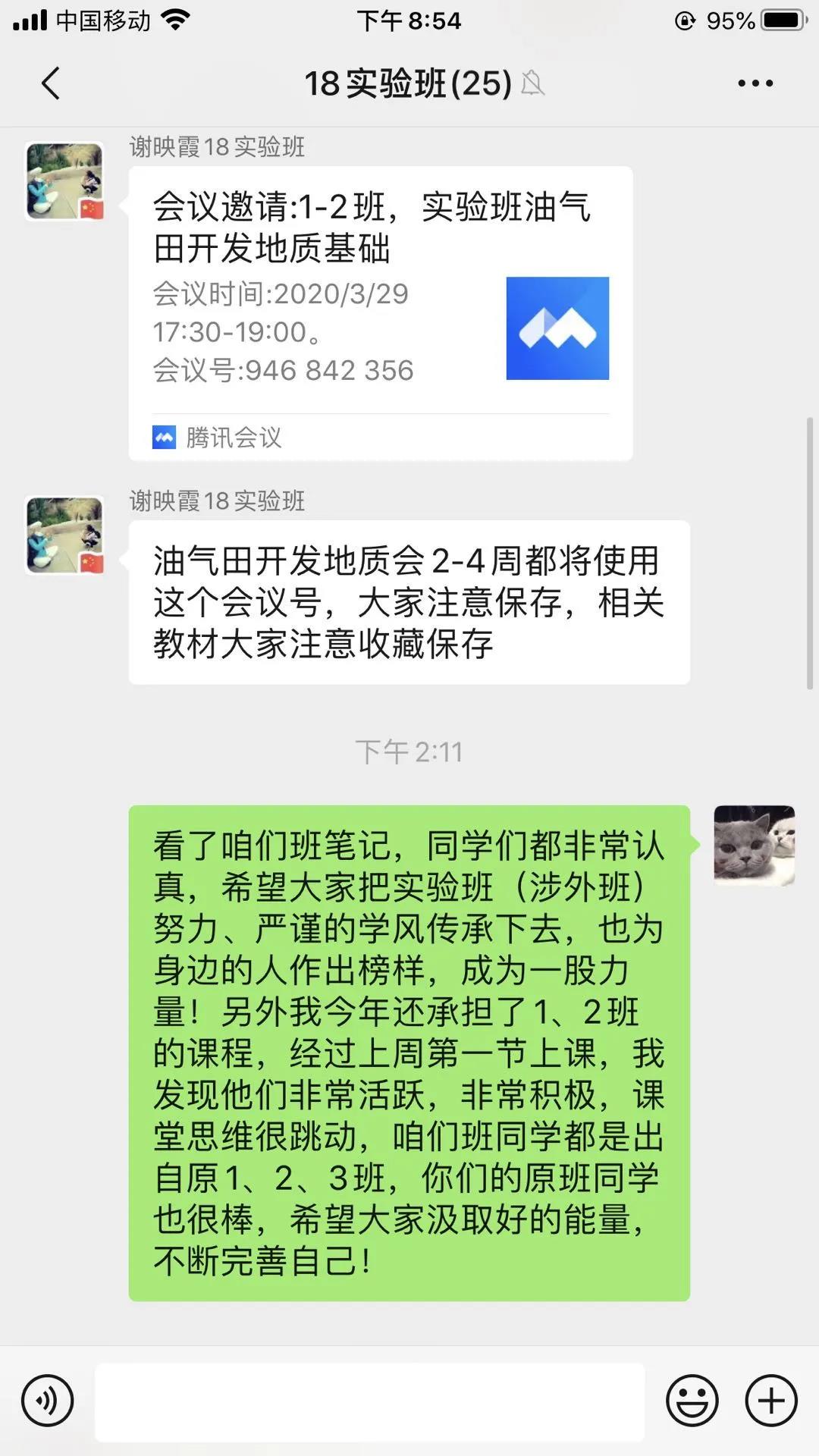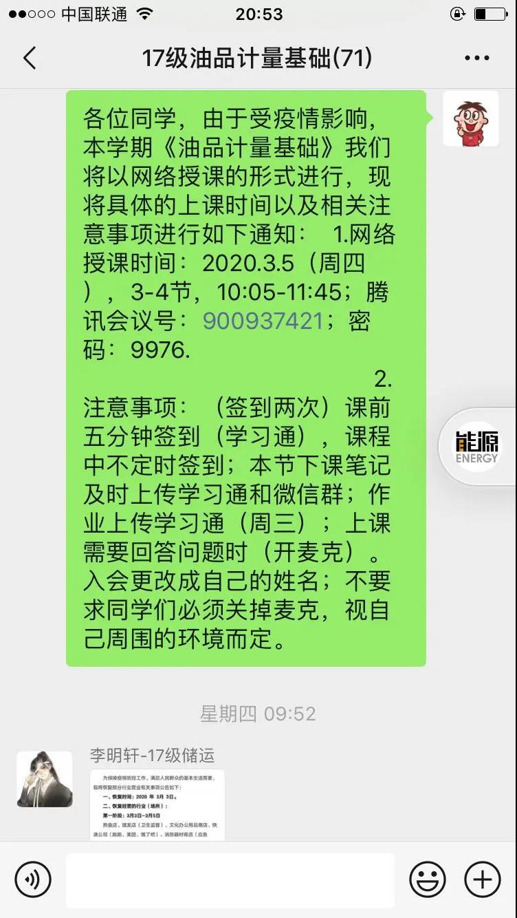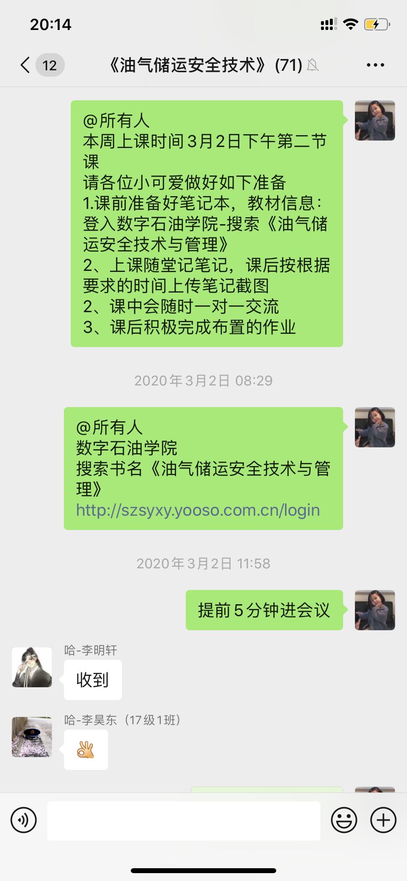 开始网络授课一周以来,所讲授的《城市燃气输配》、《工程热力学》采用腾讯会议平台,网络通畅,学生配合度特别高,所有课堂出勤率均为100%。网络教学采取直播模式进行,辅以白板彩笔暂代黑板,突出教学重点,课程中设置提问、讨论等互动活动,集中学生注意力,课后通过学习通检查笔记,收发作业,保障教学质量。