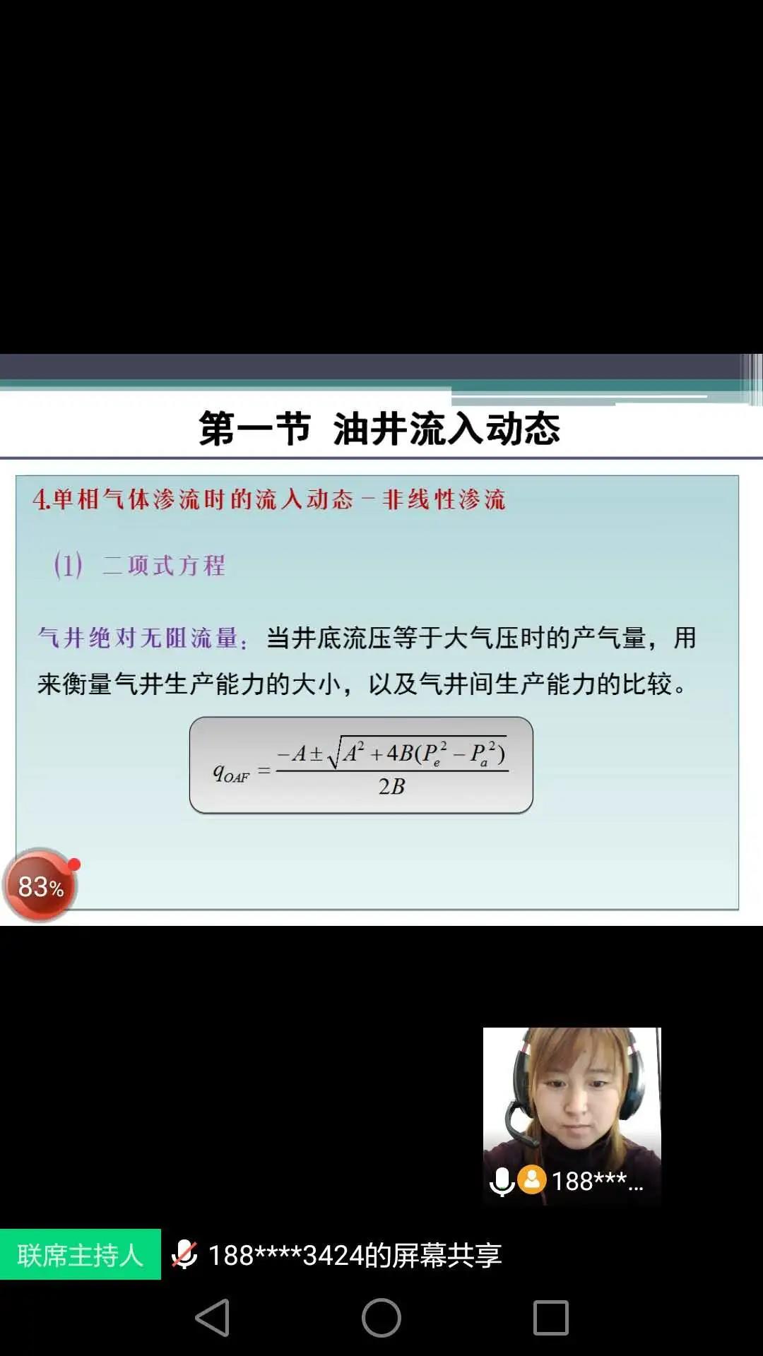 经过了为期一周的授课,我所讲授的采油工程课程一直比较顺利,学生们的学习主动性很高,不但认真的完成笔记和作业,而且会主动要求利用屏幕共享的方式为大家展示思考过程,学生们独立思考见解独特,掌握基础知识的同时还会自主创新,基本全班的学生都能够做到自我管理,自主思考,学习有热情。