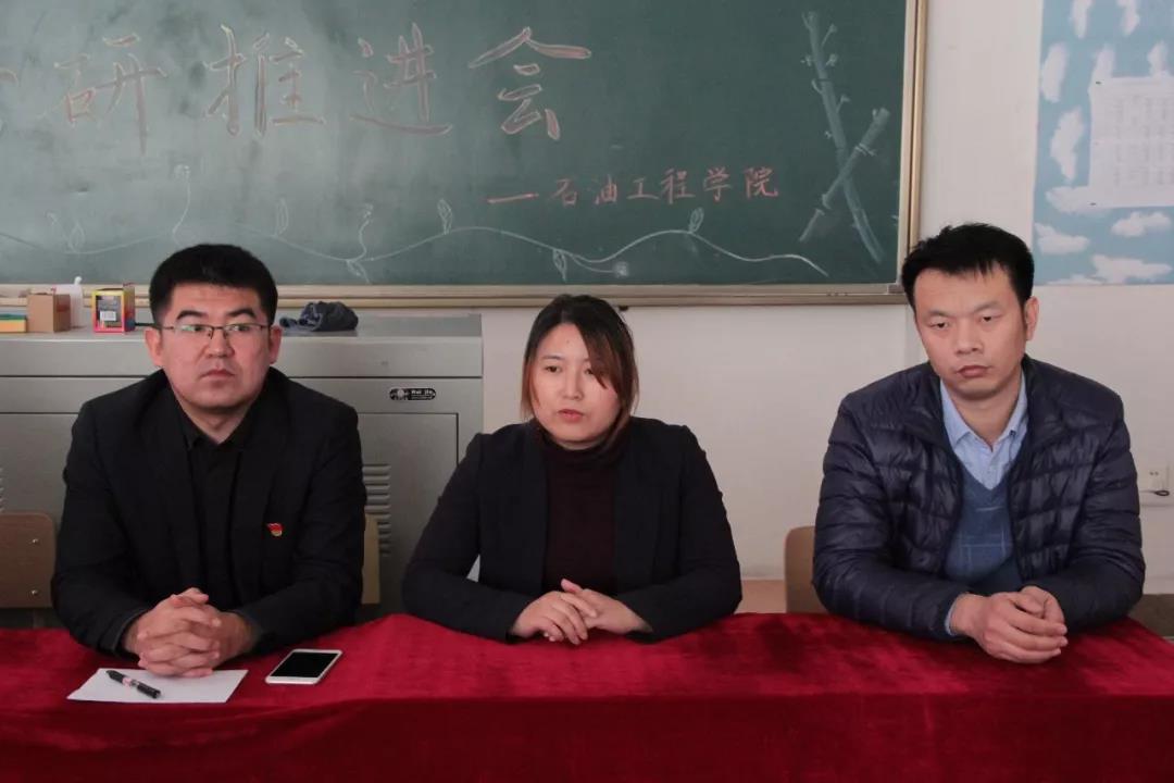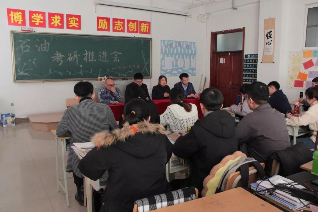 为更进一步提升我院人才培养质量,扎实推进学生考研工作,12月18日,石油工程学院召开2017级学生考研工作推进会,副院长李岳祥、石油工程系主任张国芳、石油工程教研室主任王国库、教师代表程铭参加会议。