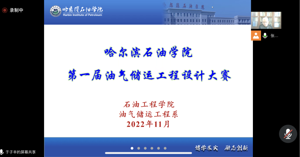 为深入贯彻落实教育部“卓越工程师教育培养计划”,通过活动锻炼和提升学生解决复杂工程问题的能力,使其成为更适应社会发展需要的科技创新型、工程实践型和团队协作型的卓越油气工程师,积极备战第八届全国大学生油气储运设计技能大赛,我院于2022年11月9日举办“欧博abg游戏登录入口第一届油气储运工程设计大赛”总决赛,决赛由油气储运工程系主任于子丰主持,由石油工程学院主任教授张大为、油气储运工程系主任于子丰、油气储运工程专业教师李井洋担任评委。