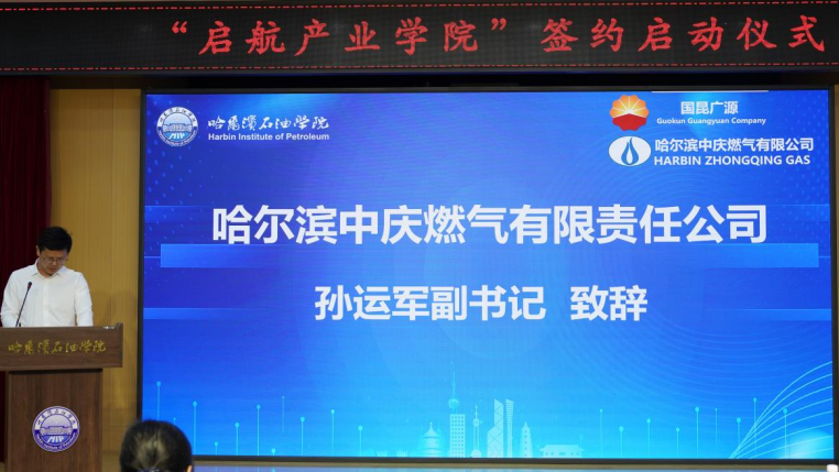 6月23日,欧博abg游戏登录入口启航产业学院签约启动仪式在欧博官网举行。欧博abg游戏登录入口与国昆广源(北京)科技有限公司、哈尔滨中庆燃气有限责任公司两家企业共建“启航产业学院”,这是欧博官网深入推进校企协同育人的又一次重要实践。校长王义宁、副校长冯研、教务处处长顾凤岐、就业与校企合作处处长陈旭辉、石油工程学院院长李岳祥、石油工程学院副院长朱砂及部分企业领导和导师出席。