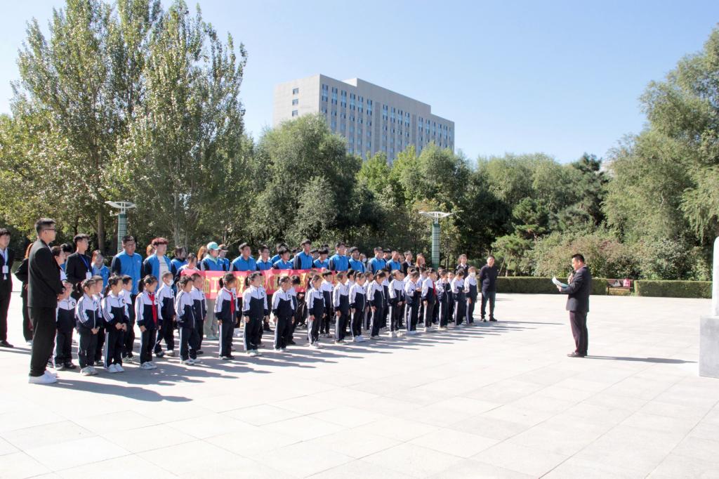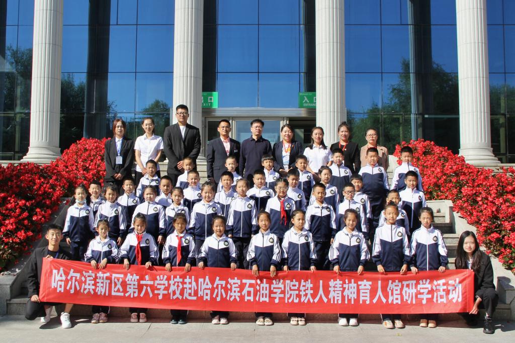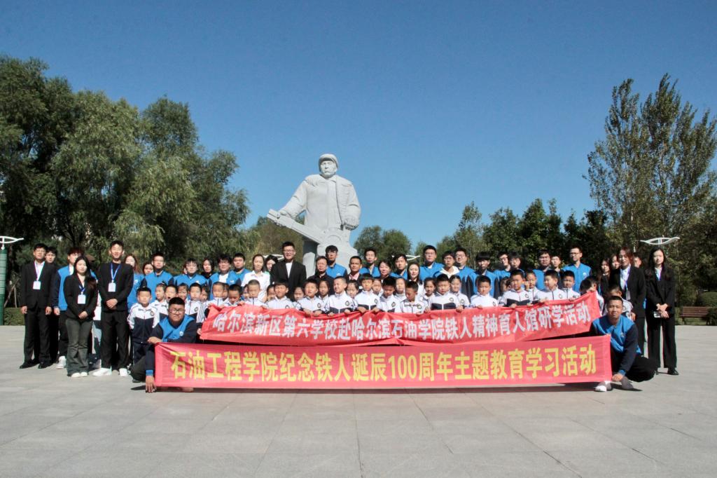 今年是铁人王进喜同志诞辰100周年,为追寻铁人的足迹,传承铁人的精神,9月22日上午9点,我院铁人精神育人实践基地——哈尔滨新区第六学校组织师生代表到欧博官网开展学习铁人精神主题研学活动。哈尔滨新区第六学校总务主任朱云宝、班主任代表林媛、教师代表王康、陈露一行40余名师生代表参加此次研学活动,我院党总支书记刘雁春、副书记张雪、学生党支部书记王娜、辅导员助理刘清娜、学生党员、学生志愿者代表共同参加了本次活动。