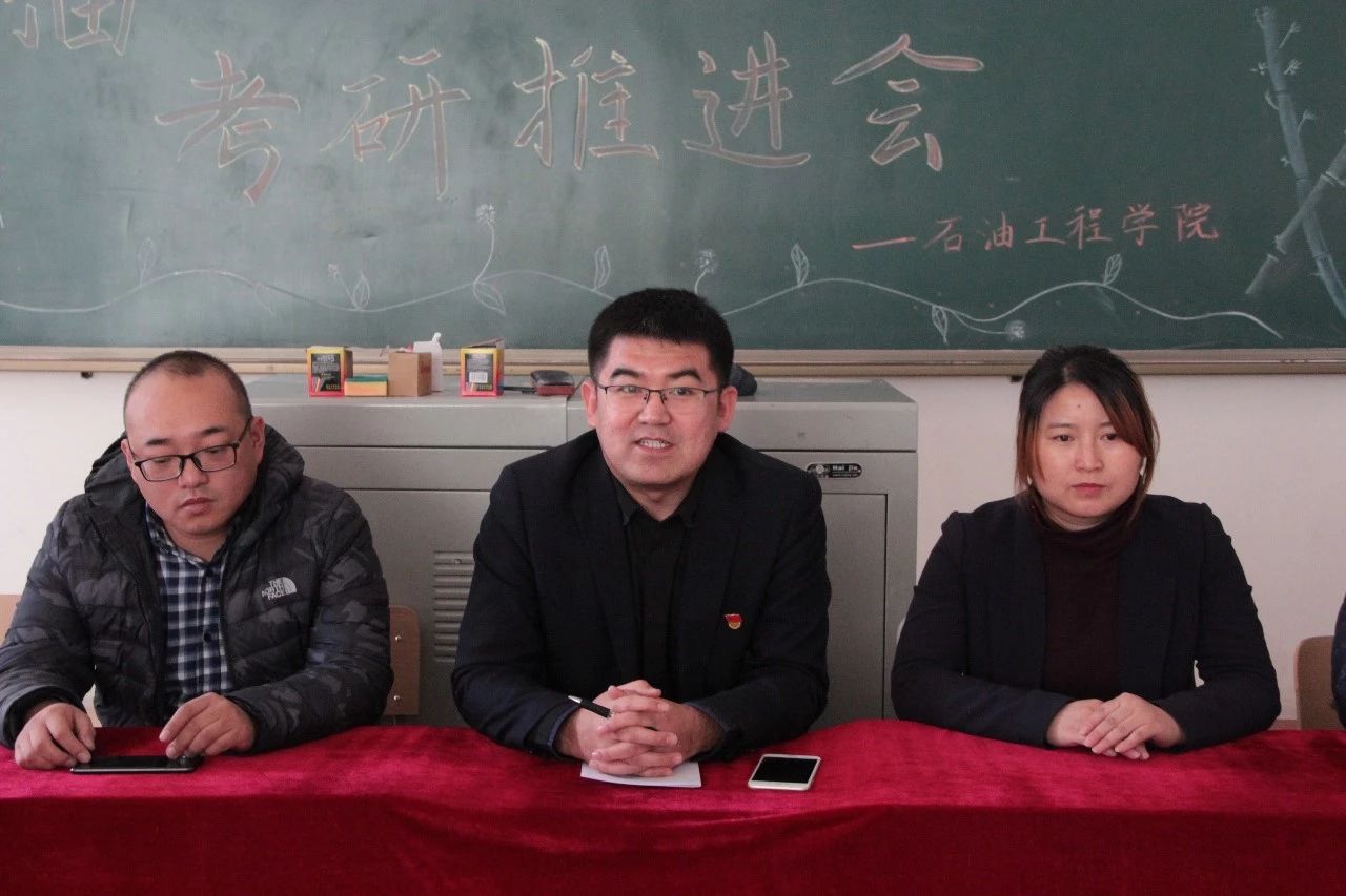 系主任张国芳针对培养方案、课程建设等方面做了深入剖析,学院为考研同学们在学习上提供大力支持,同时学校为考研的同学在图书馆提供了固定的考研区域。教研室主任王国库分析了当前石油工程专业考研形势,希望同学们能认清现实,确定目标,并为考研同学建立了考研交流群,为方便同学们答疑解惑提供便利条件。教师代表程铭着重讲解了考研数学的重要性,同时布置了假期学习任务并要求同学们必须按时完成相关内容。