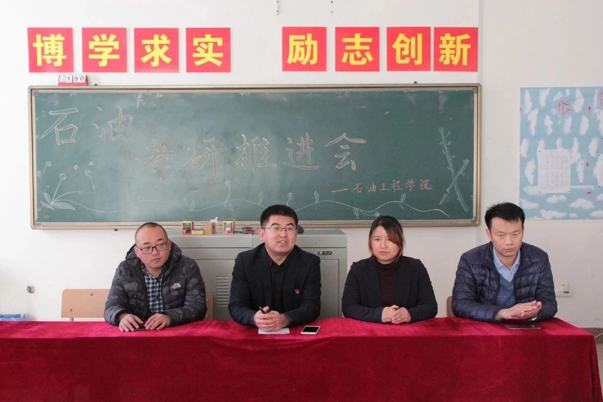 为更进一步提升我院人才培养质量,扎实推进学生考研工作,12月18日,石油工程学院召开2017级学生考研工作推进会,副院长李岳祥、石油工程系主任张国芳、石油工程教研室主任王国库、教师代表程铭参加会议。